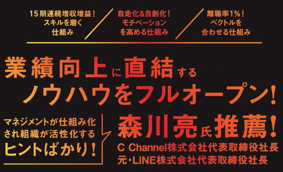 本書は、経営者だけでなく、これから組織を動かしていくマネージャー層やリーダー層にも手に取っていただきたい内容です。 特に、スキル・モチベーション・ベクトル——この三つをどう育て、重ね合わせていくか。どれか一つではなく、三つすべてが噛み合ってこそ、組織のパフォーマンスは大きく跳ね上がります。数字としてもそれは表れており、“自発性”があるだけで、利益は2倍以上にもなるというデータも出ています。 “人が仕組みを動かし、仕組みが人を育てる”。そんな組織を目指すすべての人に、ぜひ読んでいただければと思います。」