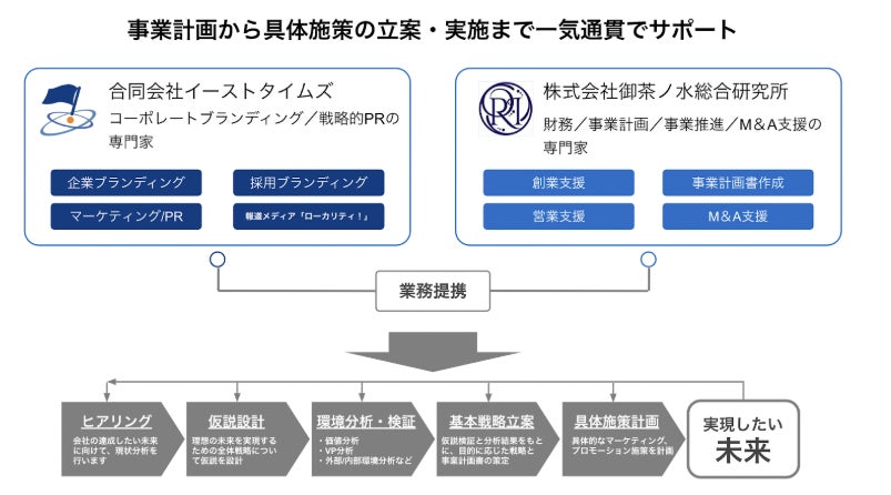 この度、株式会社御茶ノ水総合研究所(以下、御茶ノ水総合研究所)と合同会社イーストタイムズ(以下、イーストタイムズ)は、地方中小企業の価値への共感ムーブメントを、財務・採用・人事・経営面からもサポートし、事業再生・事業承継・事業成長につなげていくサービスを開始しました。