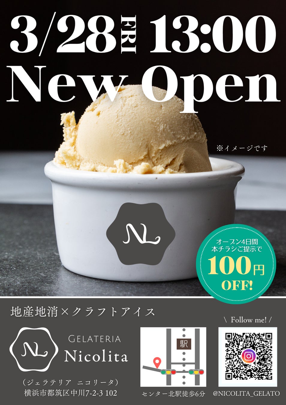 横浜市営地下鉄「センター北」駅から徒歩6分。地元農家の新鮮な野菜や果物を使い、本場イタリア製マシンで作る「地産地消ジェラート」の専門店「Nicolita(ニコリータ)」が2025年3月28日(金)にオープンします。