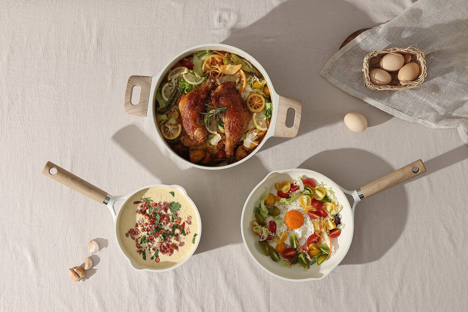 可愛らしいデザインが魅力のCAROTE。フライパンや鍋だけでなく、エプロンやミトン、キッチンツールも取り揃え、トータルコーディネートも楽しめます。今回のポップアップストアでは新シリーズのセラミックコートフライパン・鍋も店舗販売を実施いたします。「ECサイトでは見ていたけれど、実際に手に取ってから購入したい」というお客様の声にお応えします。