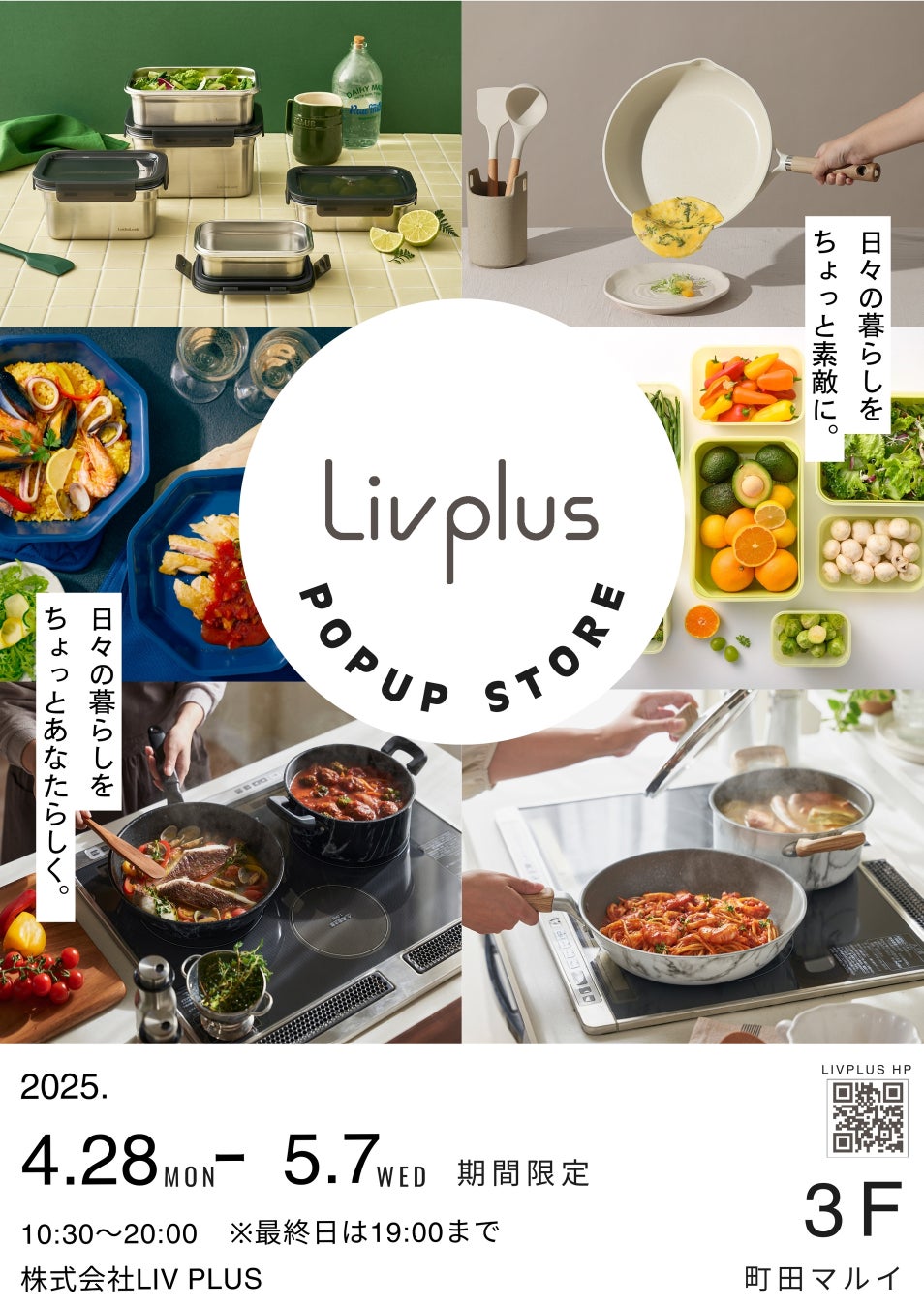 「日々の暮らしをちょっと素敵に。日々の暮らしをちょっとあなたらしく。」をコンセプトにキッチン・レジャー用品などを開発する、株式会社LIV PLUS(本社:大阪府、代表取締役社長:中西大輔)は、2025年4月28日(月)~5月7日(水)の10日間、町田マルイ3Fにポップアップストアを初出店します。人気のフライパンをはじめとしたキッチン雑貨・高機能保存容器やタンブラー・保冷バッグなどのダイニング・レジャー用品を販売いたします。