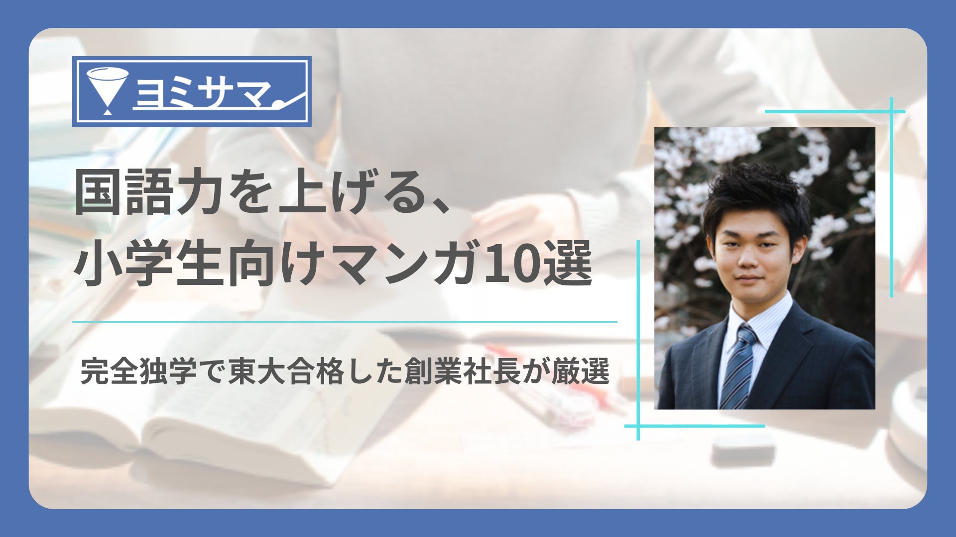 この度、教材として導入している作品を含む小学生の国語力向上に役立つマンガ10作品を厳選し、発表いたします。本リストは、完全独学で東大に合格し法学部を卒業した当社代表の神田直樹が、自身の経験と教育現場での知見をもとに選定したものです。