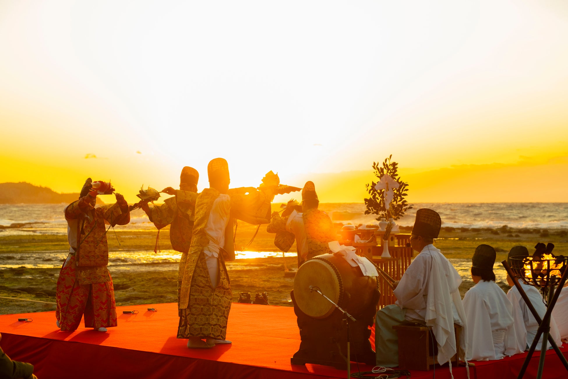 豊漁と商売繁盛の神・恵比須様が、美保の御崎で釣りを楽しむ姿を、コミカルに描いた神楽。幻想的で縁起の良い雰囲気が魅力の、親しみやすい人気演目です。