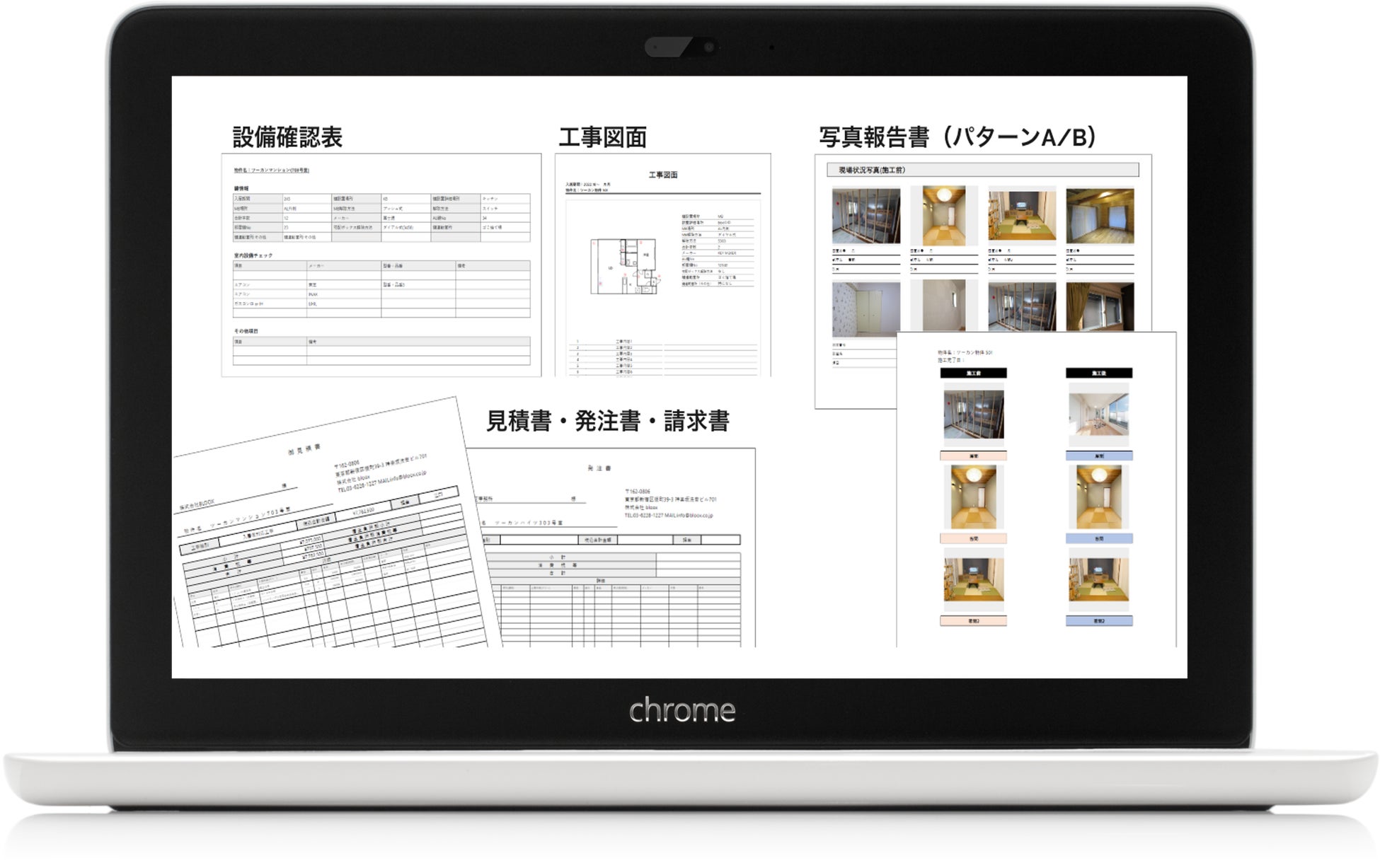 年間3,000件以上の退去立会代行と4,000件以上の工事実績を持つ施工店としての豊富な経験とノウハウを活かし、現場の実情に即した誰もが使いやすいシステムとなっています。