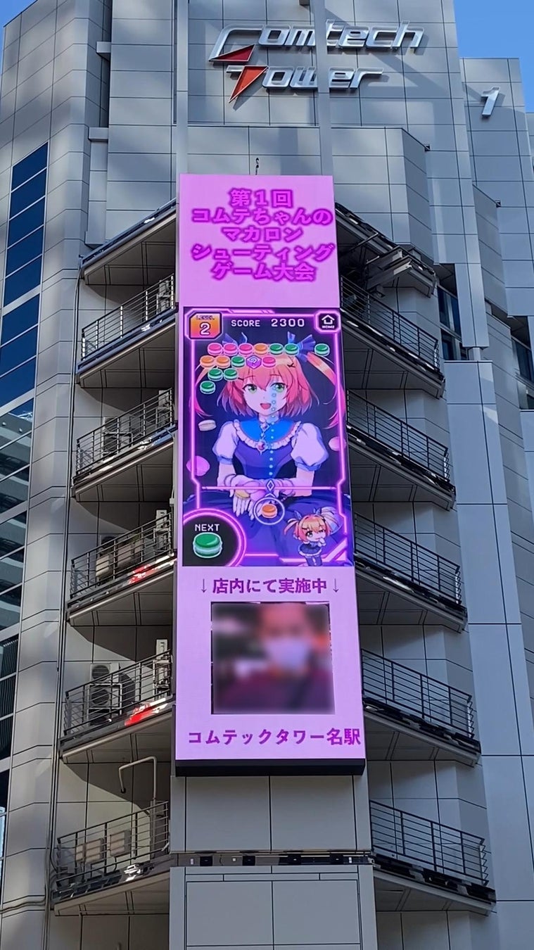 明和興産株式会社(本社:愛知県名古屋市)は、大型LEDビジョン専用オリジナルゲームでは日本初となるゲーム大会「コムテちゃんのマカロンシューティング大会」を開催いたします。