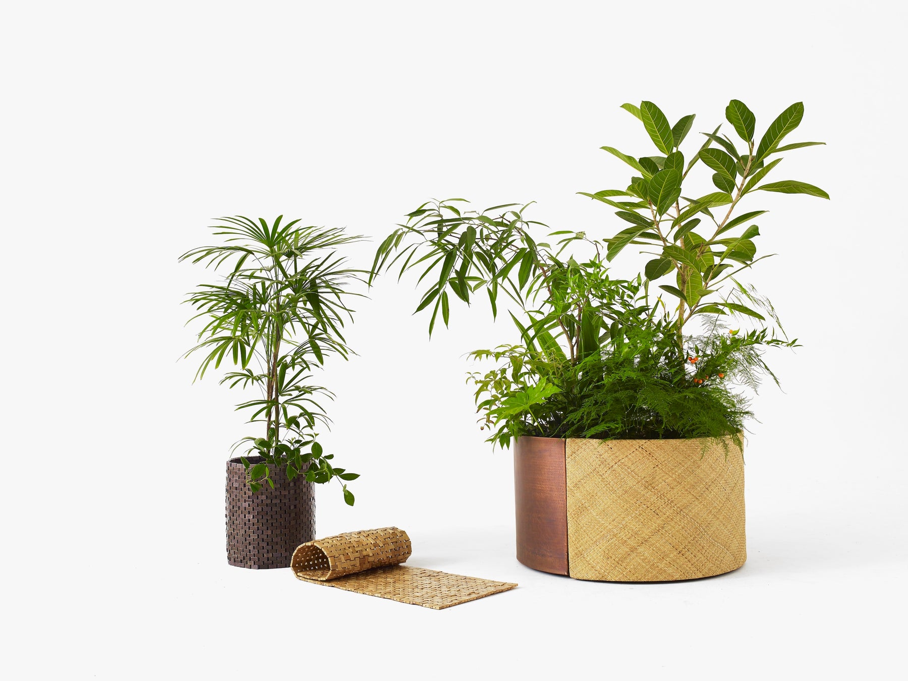 バリ在住のスンバ島出身の職人たちがひとつひとつ丁寧に手作りで編み上げます。植物が最も必要とする空気の流れを表現し、人も植物も心地よい風を感じられる空間をつくります。