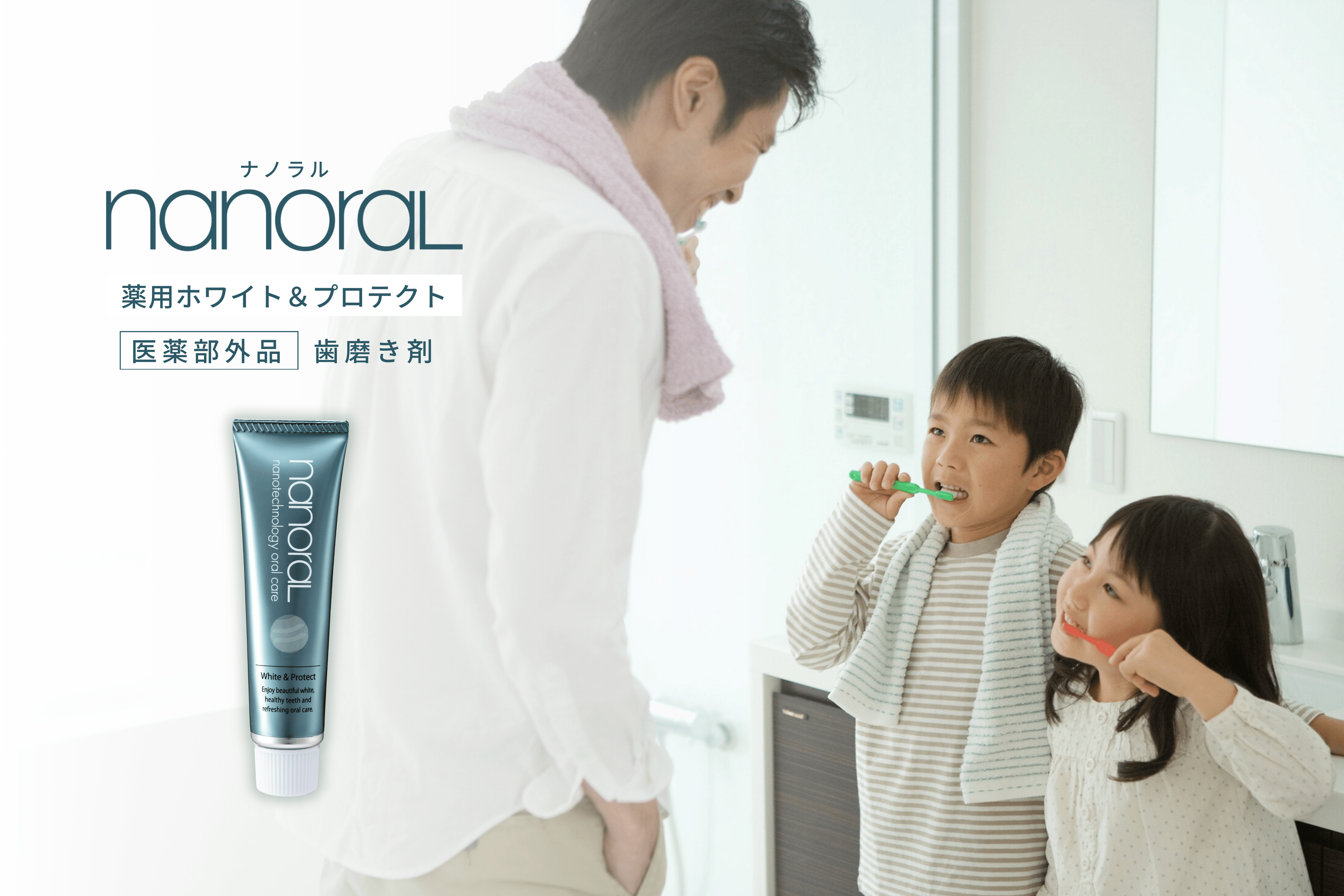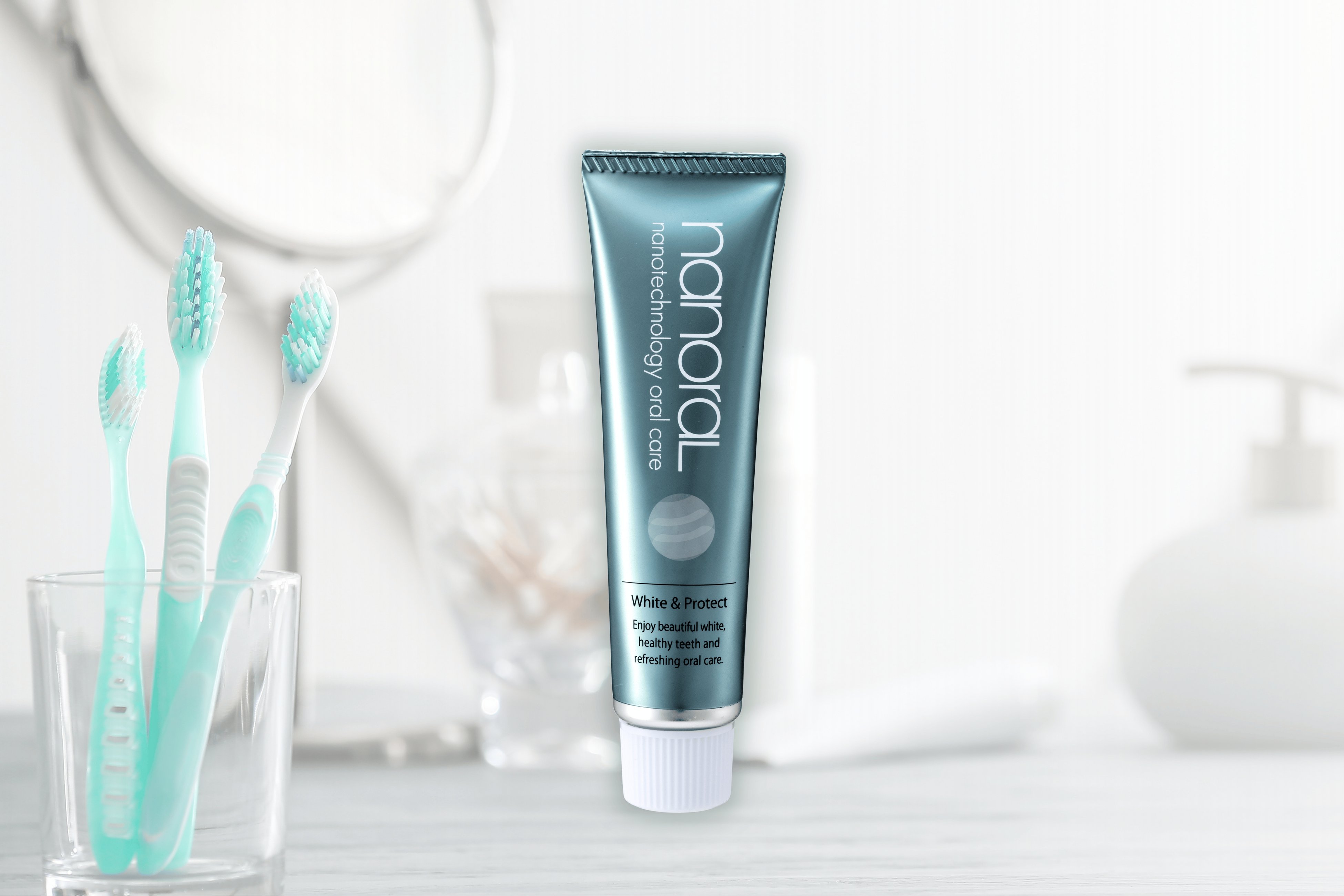 高機能高級歯磨き剤「ナノラル」は、粉体技術の世界トップシェアを誇るホソカワミクロン株式会社の独自のPLGAナノカプセル技術を採用し、有効成分としてIPMP(イソプロピルメチルフェノール)をナノサイズのカプセルに封入。これにより、有効成分が歯や口腔内に長時間浸透し、持続的なケアをサポートします。