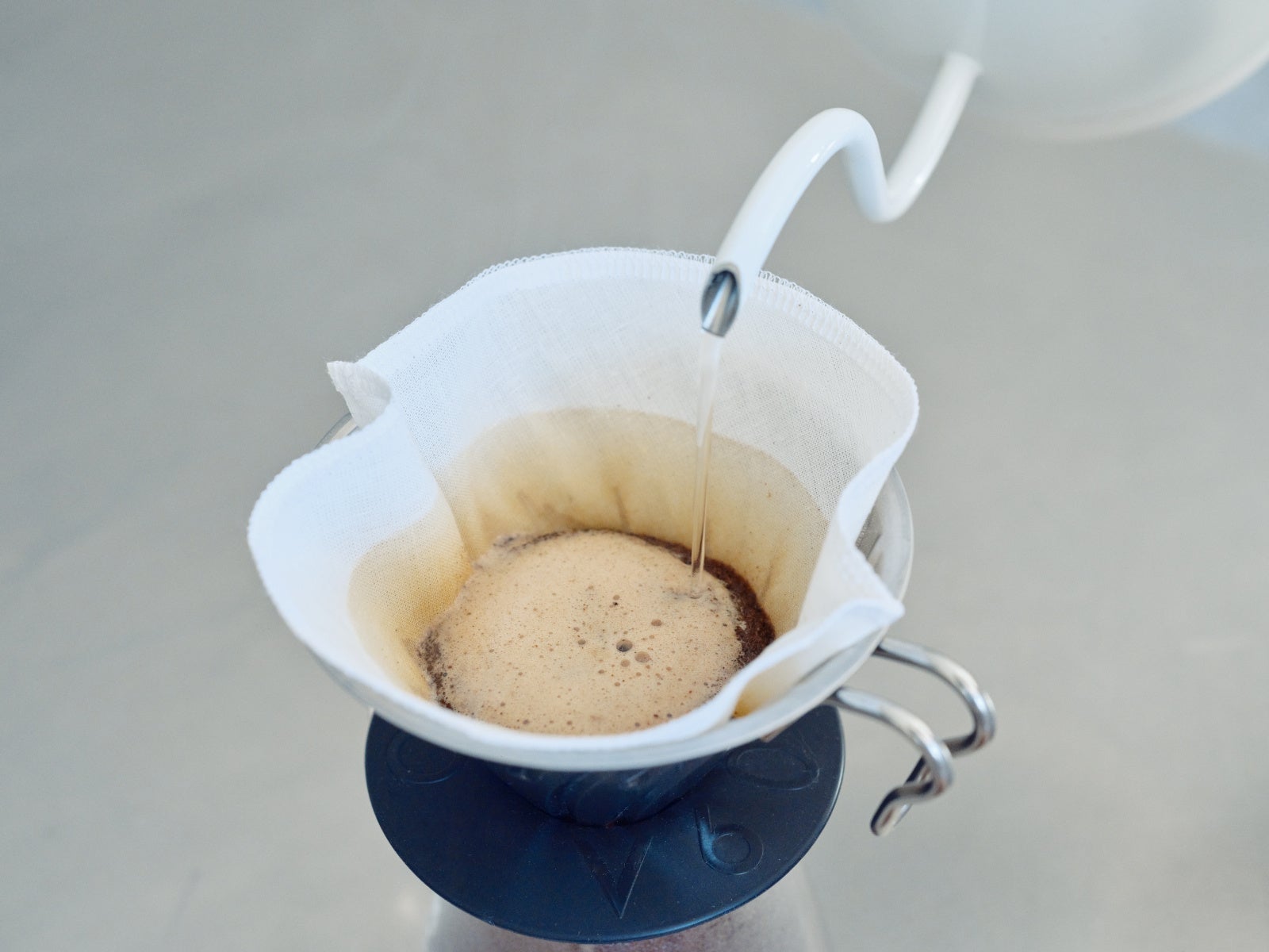 さっと使える万能布「さささ」がコーヒーフィルターになりました。食品でも安心な和晒ロールと同じ岡生地を使用しています。毎日の暮らしの中で、洗って繰り返しお使いいただけます。