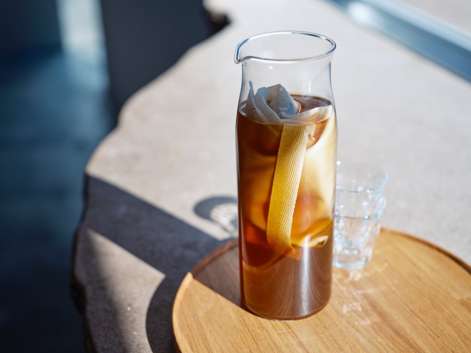 水出し用のコーヒーフィルターです。コーヒー粉を包んで紐に通し、所定量の水に浸して抽出します(抽出は冷蔵庫で約12時間)。微粉が出にくく、クリアな飲み口に。低温でじっくりと時間をかけて抽出する水出しコーヒーは、苦みや酸味が抑えられ、滑らかな味わいになります。抽出後は、紐部分を持ってさっと取り出し、洗って繰り返し使えます。