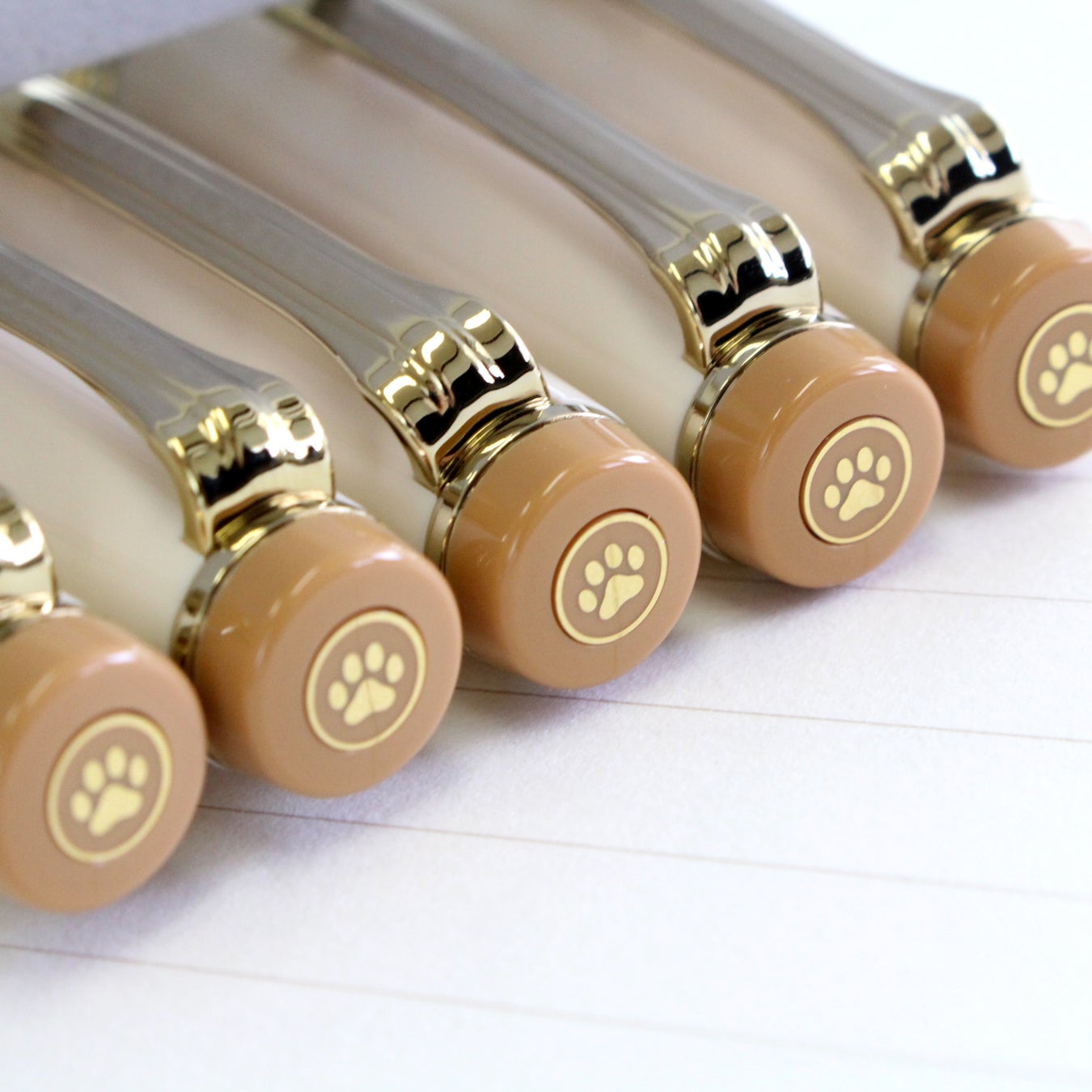 さらに、蓋栓にはゴールド箔押しの肉球マーク、14金ペン先には対馬野生生物保護センターの4代目公開個体「かなた」の姿を繊細に刻印。自然や動物を愛する方の心にも響くデザインです。