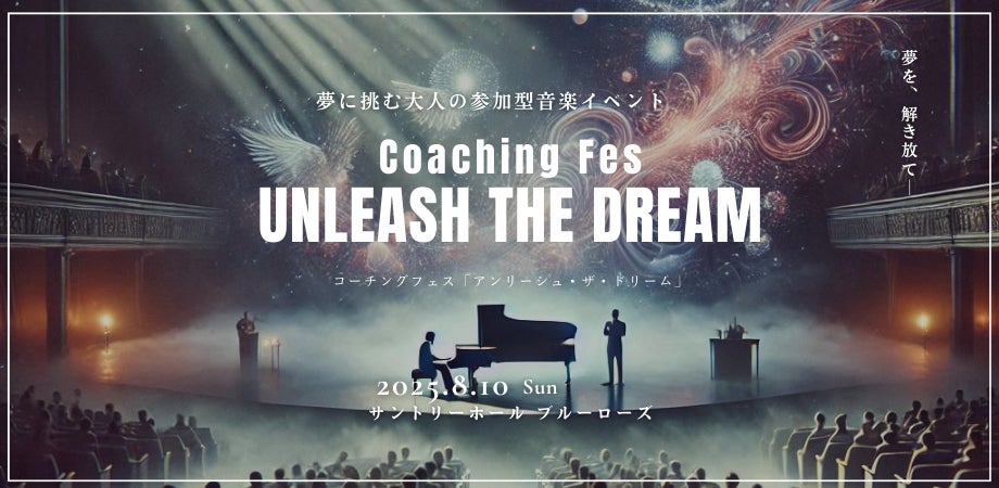 このたび、音楽とコーチングが融合した新しい参加型音楽イベント「Unleash the Dream」を、サントリーホール ブルーローズにて2025年8月10日に初開催することが決定しました。