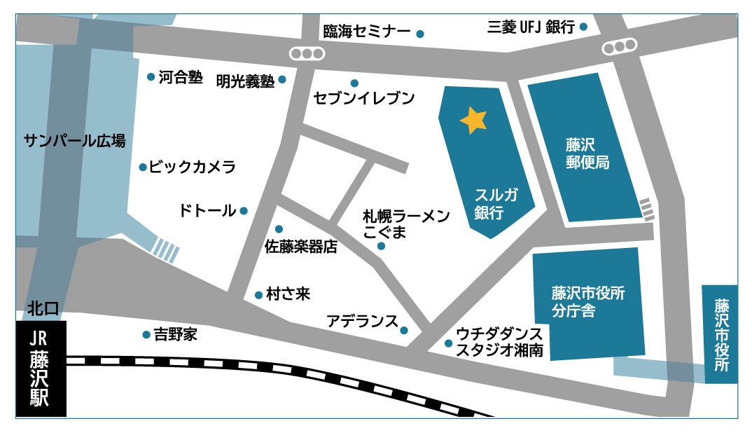 藤沢駅北口のランドマークである、藤沢郵便局の隣のビルなので、ご相談に足をお運び頂く際にわかりやすい立地となります。