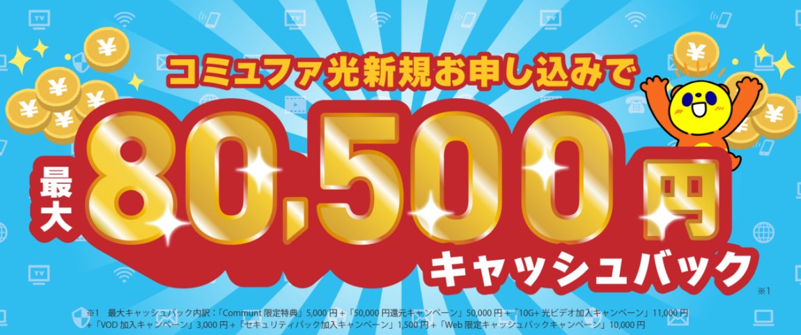 【ティー.ティーコーポレーション株式会社】コミュファ光「最大80,500円分キャッシュバックキャンペーン」2025年3月より実施中。愛知、岐阜、三重、静岡、長野にお住いの皆様はこの機会をお見逃しなく!