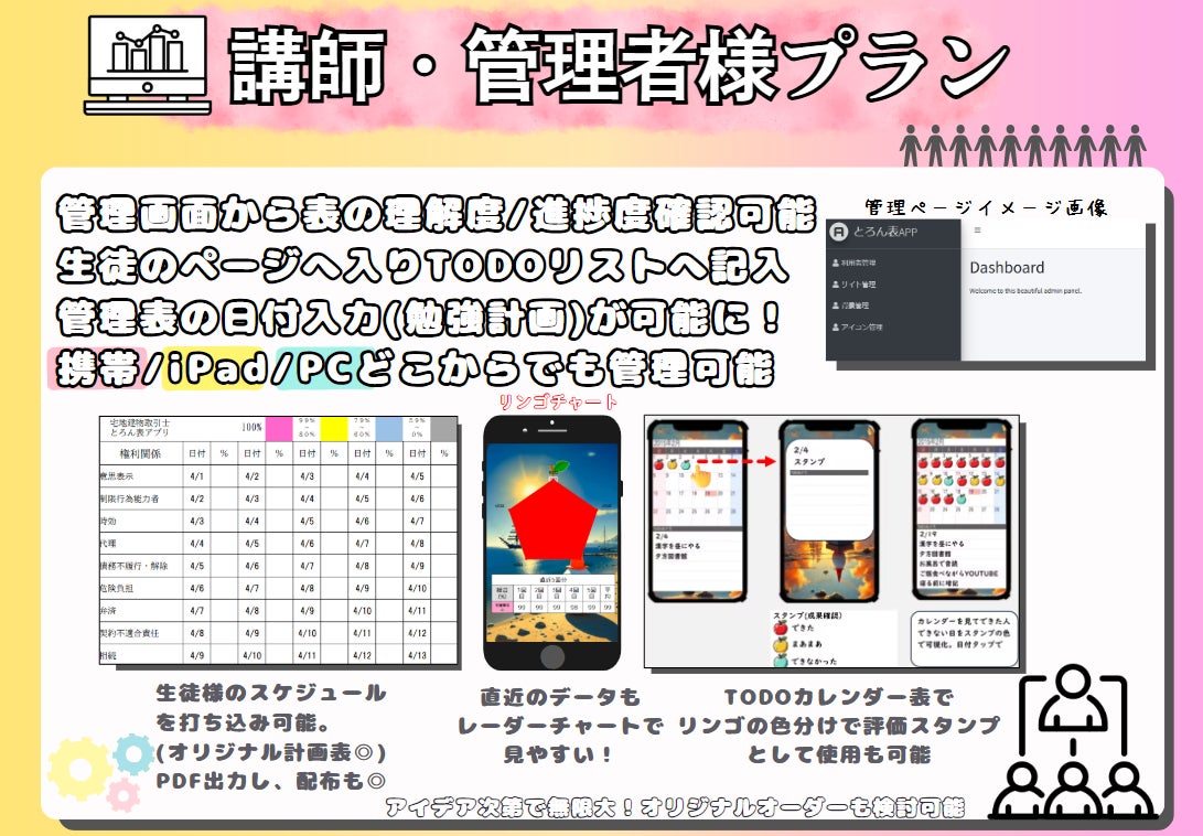 今後とろん表アプリはSNSで活動されてる個人オンライン家庭教師や資格講師様とのパートナーシップ契約、塾などへの管理システム販売を導入予定です期(今期秋)