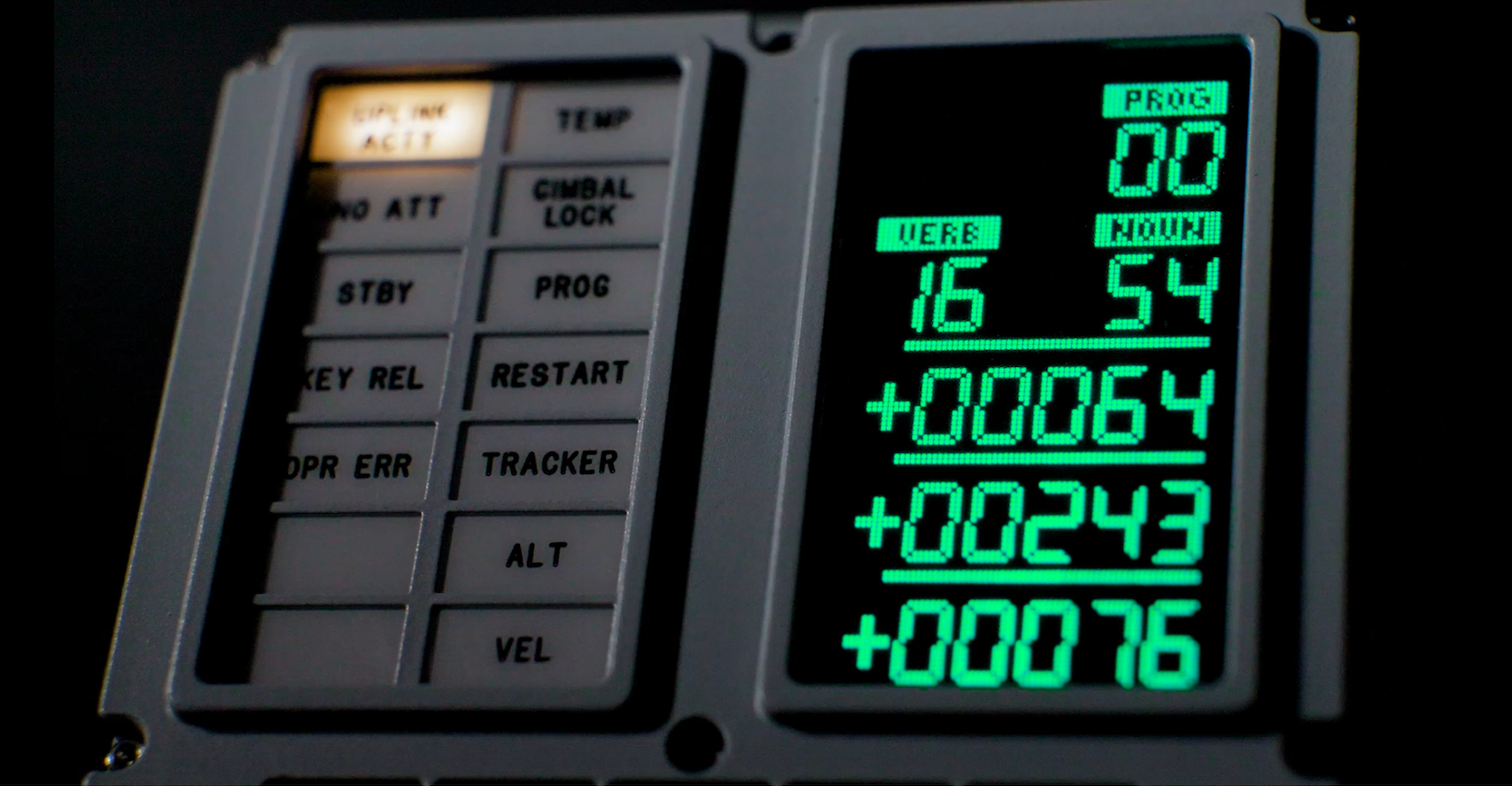 アポロ計画の宇宙飛行士とAGCとのインタラクションは、その小型化と同様に画期的なものでした。MITは、当時のコンピューターにおいて一般的だった数千ものパンチカードや、多数のスイッチとライトの代わりに、ユーザーが動詞と名詞のコードを入力することでルーティンを実行できる初期のディスプレイとキーボードシステムを開発しました。