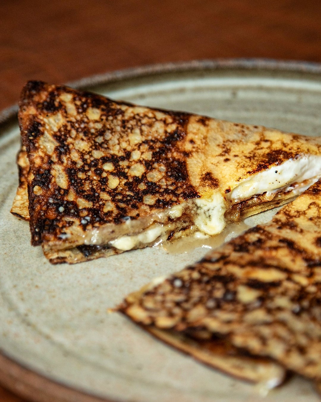パリパリ新食感!店内で1枚ずつ丁寧に焼き上げる、焦げを楽しむ新スイーツ「BLANCA Crepe (ブランカクレープ)」。あえて焦がした香ばしい生地は、日本橋兜町のチョコレート&アイスクリームショップ「teal (ティール)」、カカオのラボ「nib (ニブ)」などの人気店を手掛けるトップパティシエ眞砂 翔平氏が監修を務め、このたびBLACA東 鉄雄とのコラボメニューが実現。