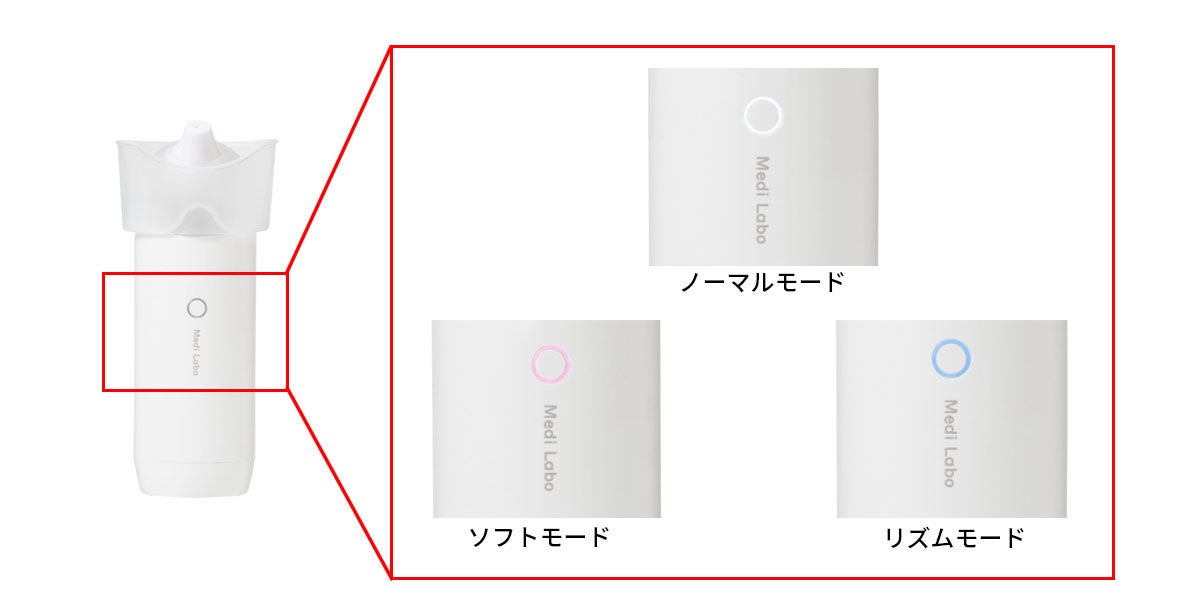 電動式のため、はなミストを装着してボタンを押すだけで簡単に鼻を洗浄できます。シンプルな1ボタンで、症状やお好みに応じて3つの洗浄モードを用意しました。