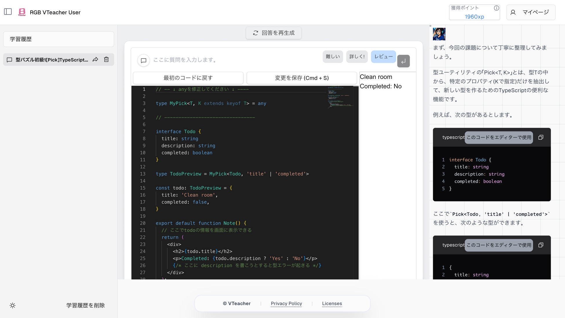 【VTeacher AI】シーズン2が開始!新ステージはTypeScriptの型パズルを攻略 ―「まるで“ラスボスを倒すような体験”」「この形にたどり着くまでには時間がかかった」開発者インタビュー