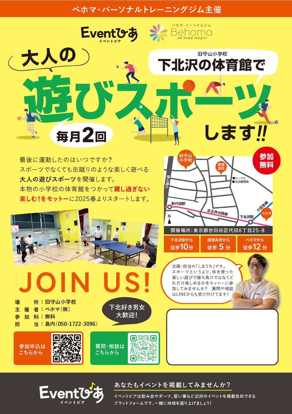2025年春 下北沢にて無料の運動イベント開催!「大人の遊びスポーツ」で楽しく体を動かそう!(月2回)