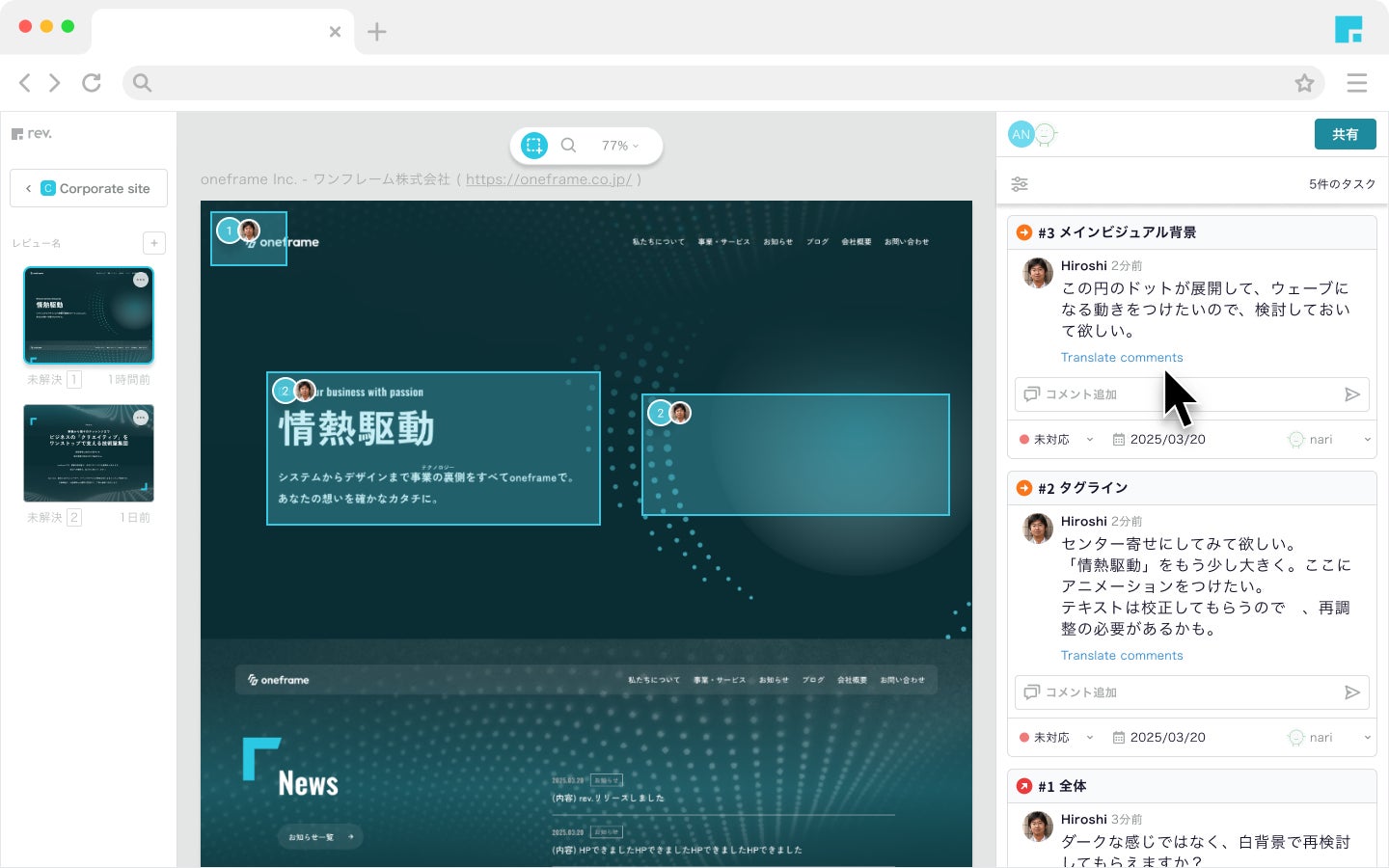 Web制作フィードバックツール「rev. (レブ)」が、本日より正式サービス提供開始。多言語対応・直感的操作で制作におけるコミュニケーションの課題を解決。