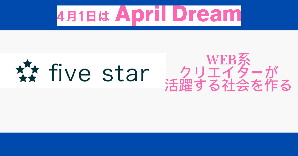 当社は、4月1日を夢を発信する日にしようとするApril Dreamに賛同しています。このプレスリリースは「株式会社fivestar(代表:日原義人、大阪市北区)」の夢です
