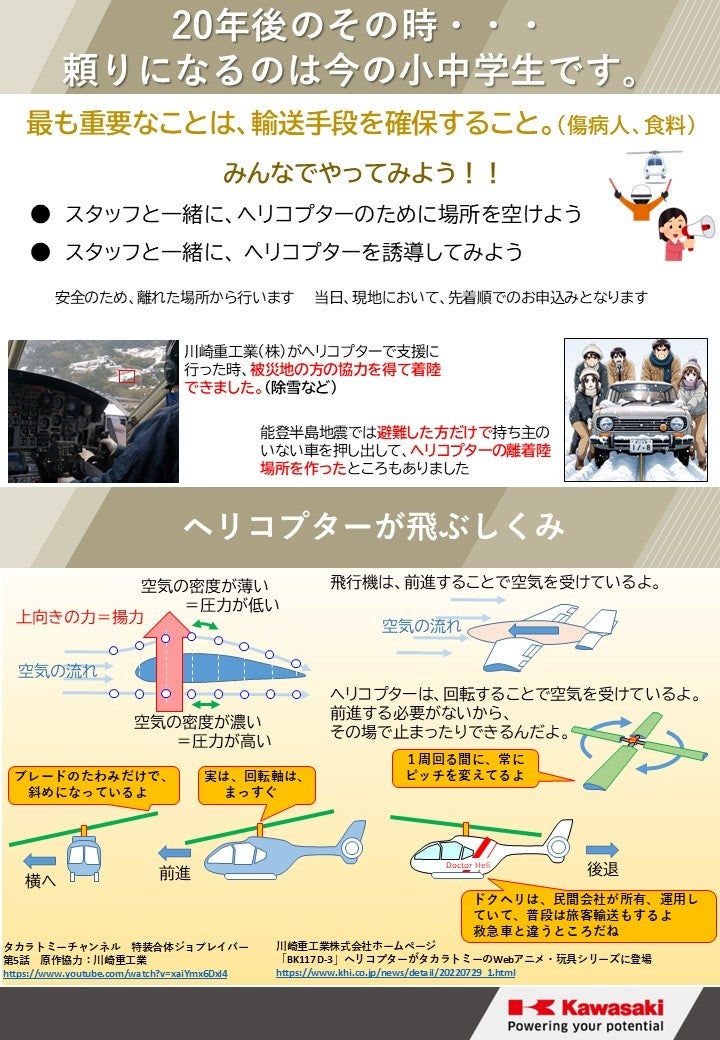 【川崎重工グループ ヘリコプター手配サービス Z-Leg™︎】によるヘリコプターに乗れる航空防災教室を2025年3月22日(土)に開催