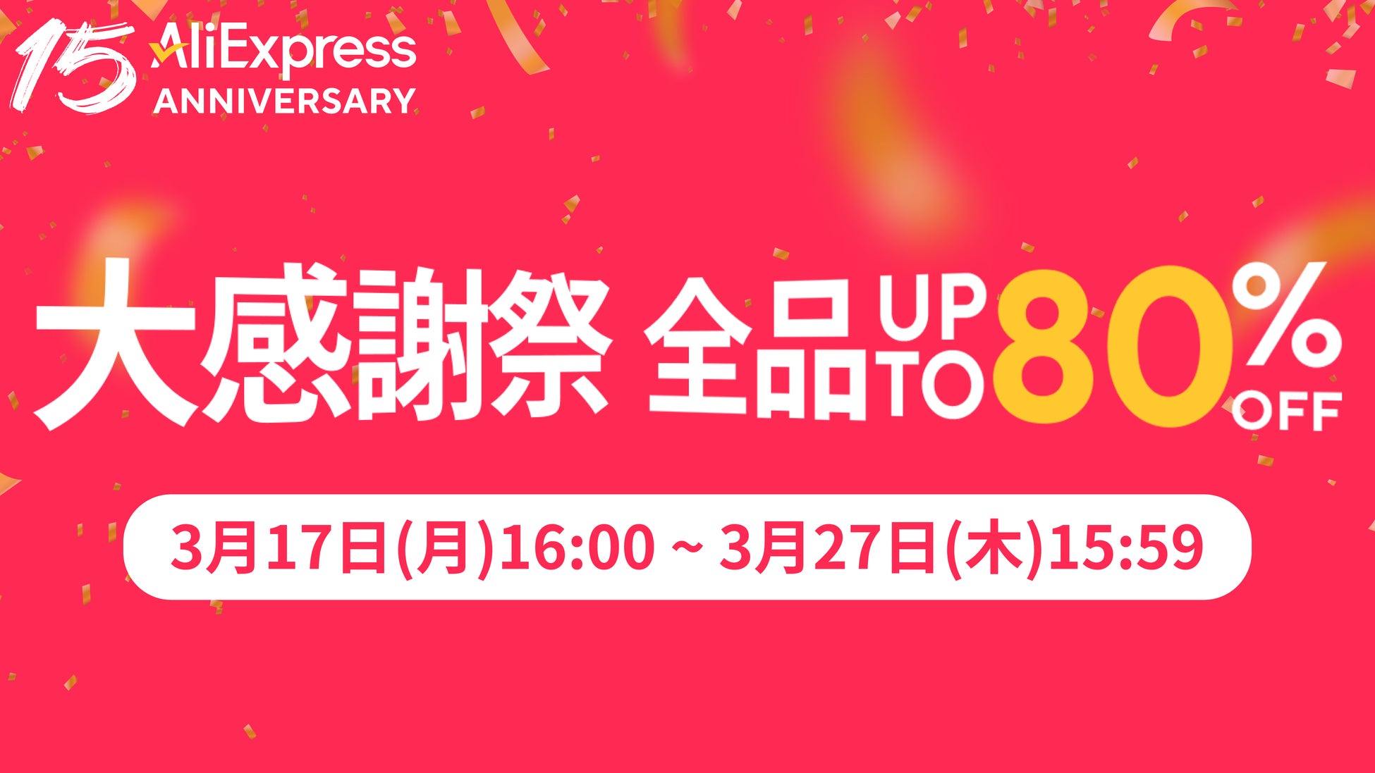 アリババグループが運営するグローバルECプラットフォーム「AliExpress(アリエクスプレス)」は、日本でのサービス開始から15周年を迎えました。感謝の気持ちを込めて、2025年3月17日(月)16:00から3月27日(木)15:59まで、過去最大規模の「15周年アニバーサリーセール」を開催します。