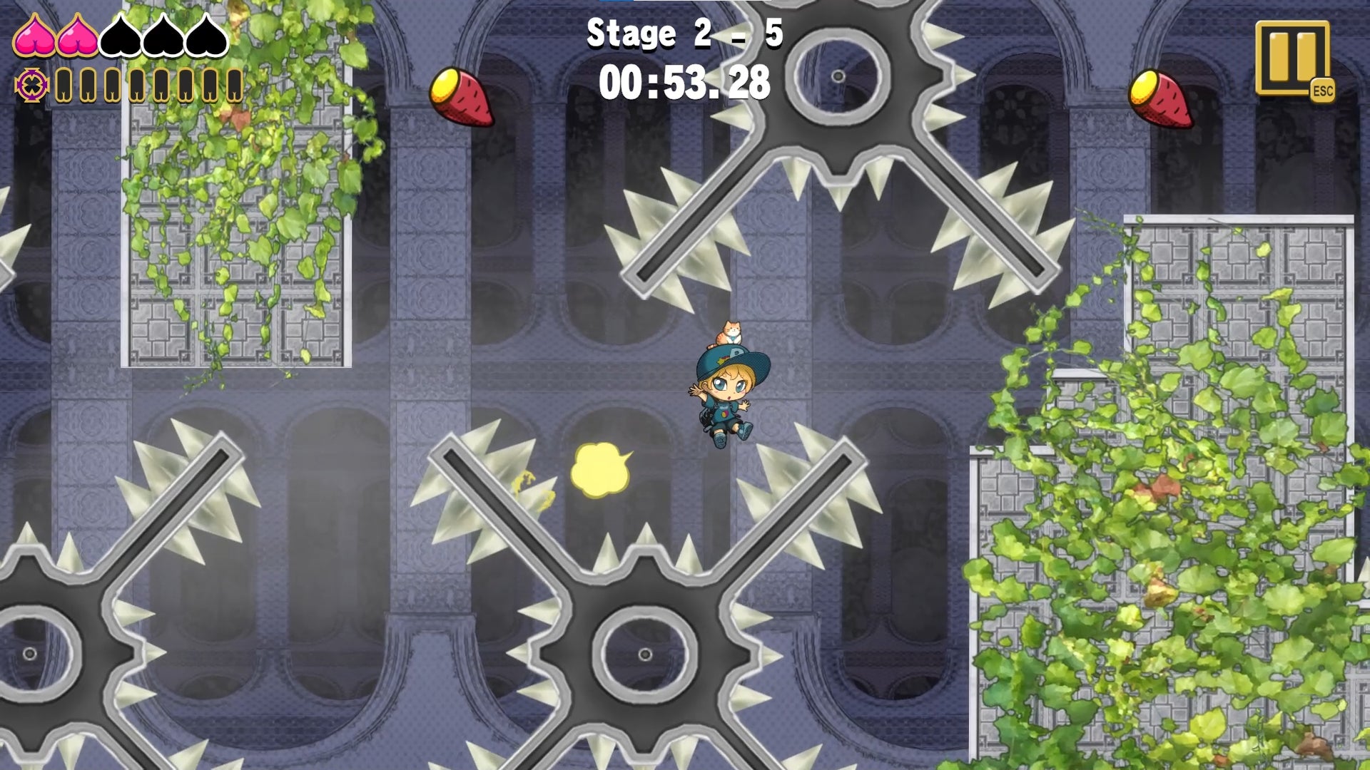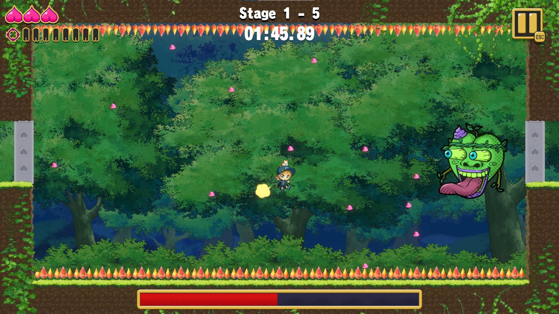 操作は攻撃とジャンプが一体化した2つのボタンのみ。シンプルながらもクセになる操作感と、見た目のポップさとは裏腹な難易度の高さが特徴です。