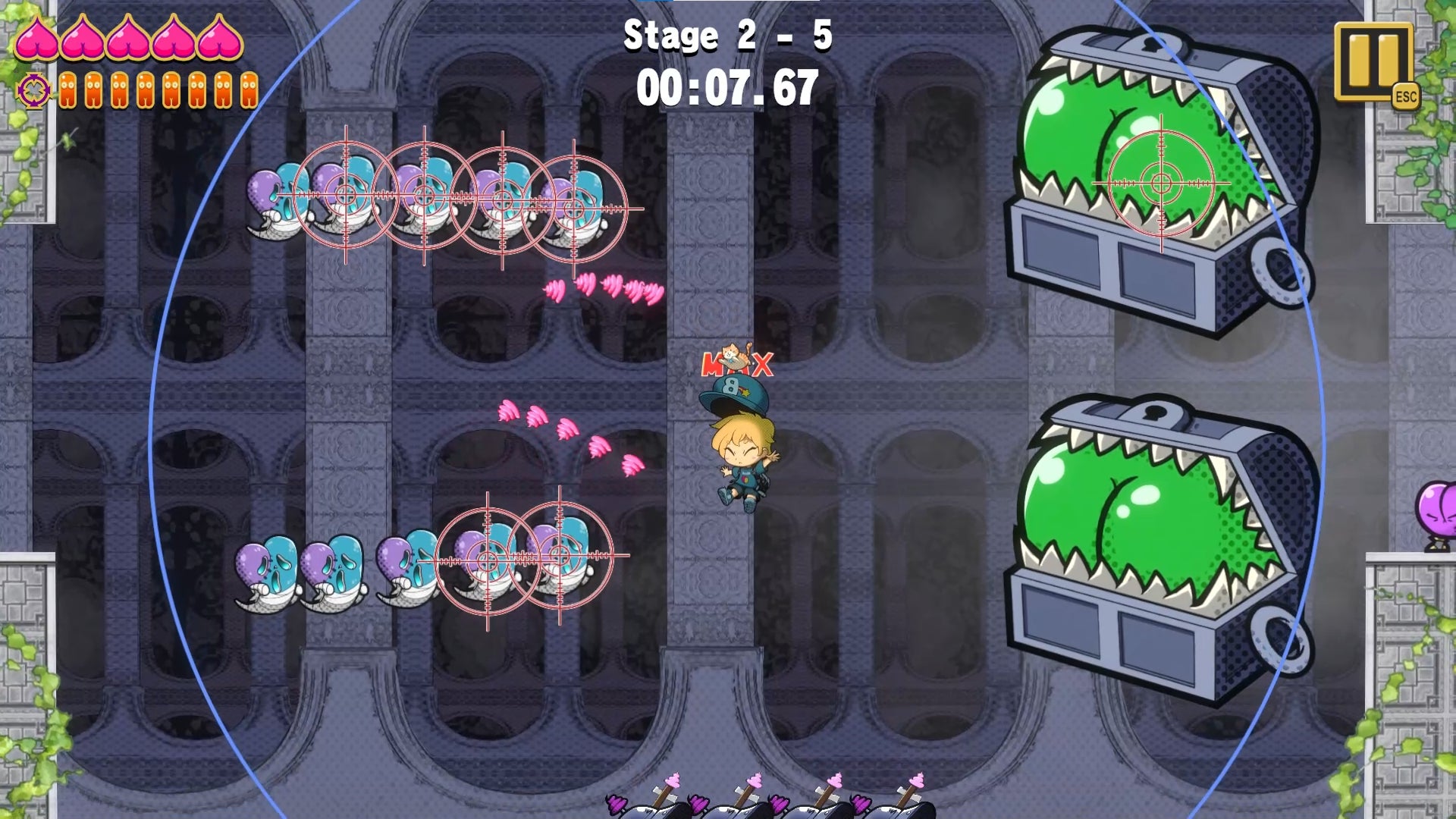 全25ステージに待ち受けるのは、手ごわい敵と巧妙なギミックの数々。クリアーするには何度もトライが必要になるかもしれません。