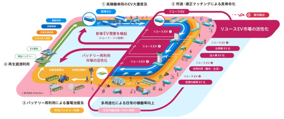 今回の出資契約を機に、MobiSaviは出資先企業などとの協力により、バッテリー性能予測シミュレーションを活用したリユースEV(中古EV)のバッテリー性能保証および残価保証の仕組みの構築を目指し、持続可能なEV市場の発展に貢献してまいります。