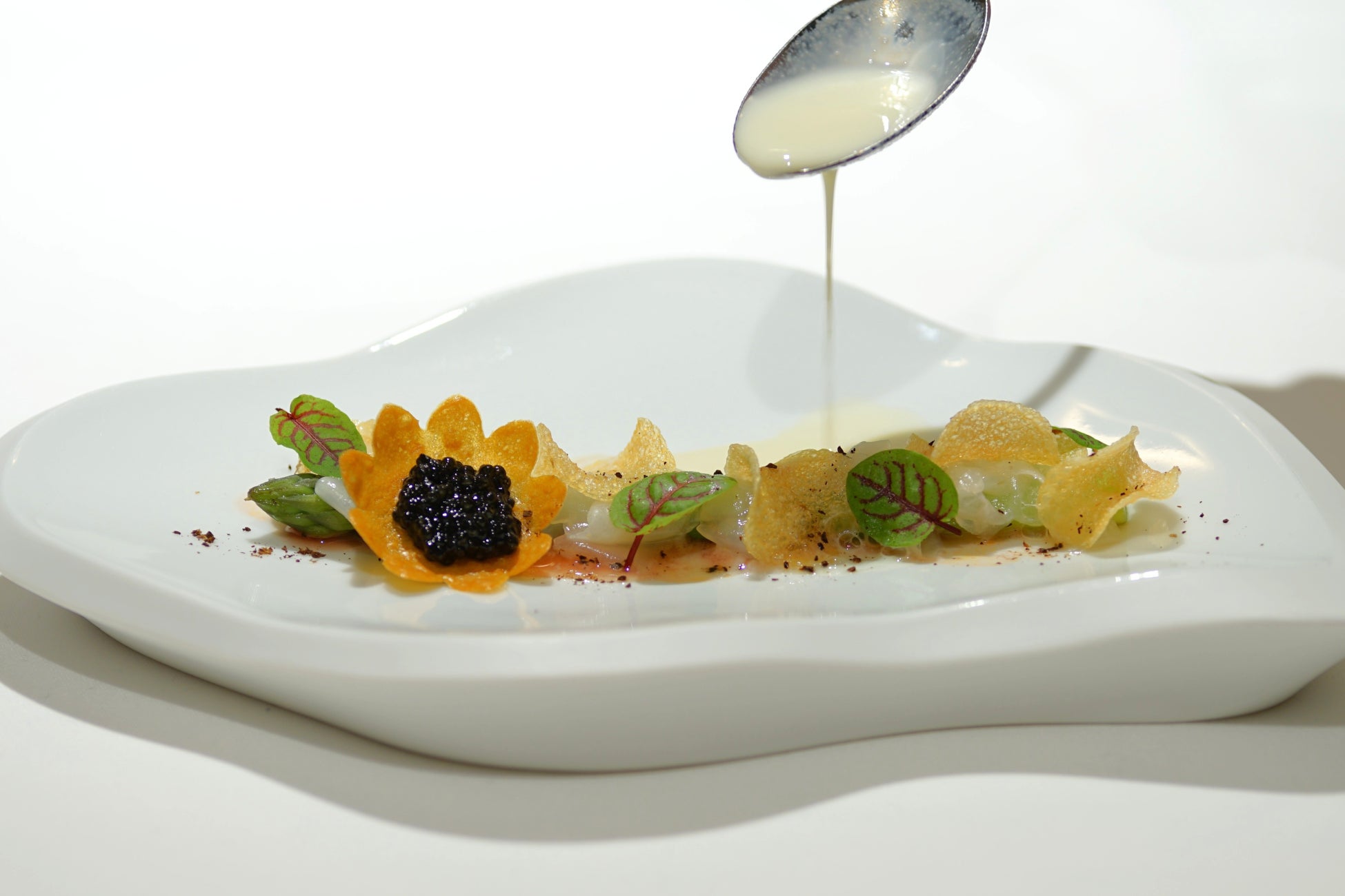 直感と理論の融合を重視し、分子ガストロノミーを香り・食感・温度を設計するための表現手段として活用。伝統的な技法に科学的アプローチを掛け合わせることで、食材の持つ可能性を最大限に引き出し、枠にとらわれない一皿を提供している。