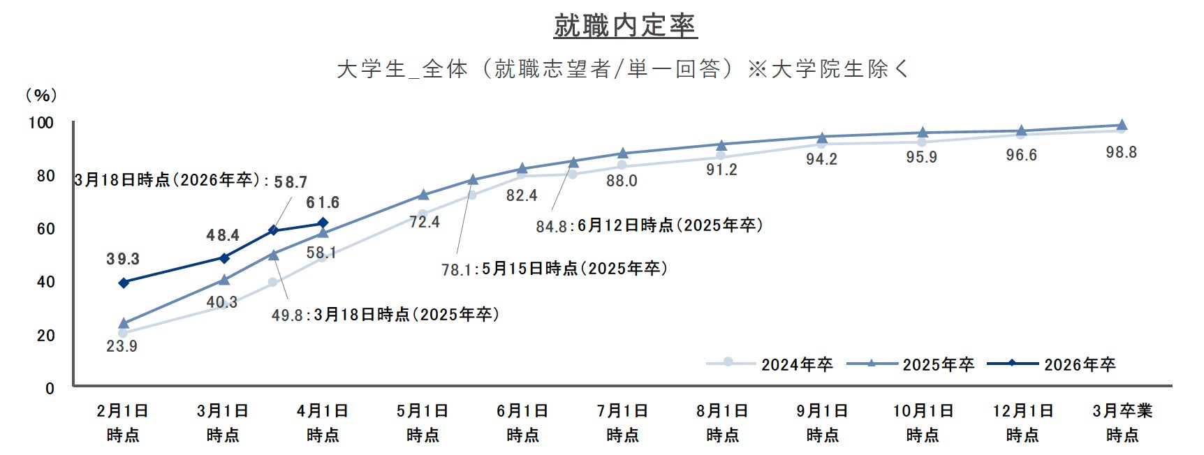 就職プロセス調査(2026年卒)「2025年4月1日時点 内定状況」