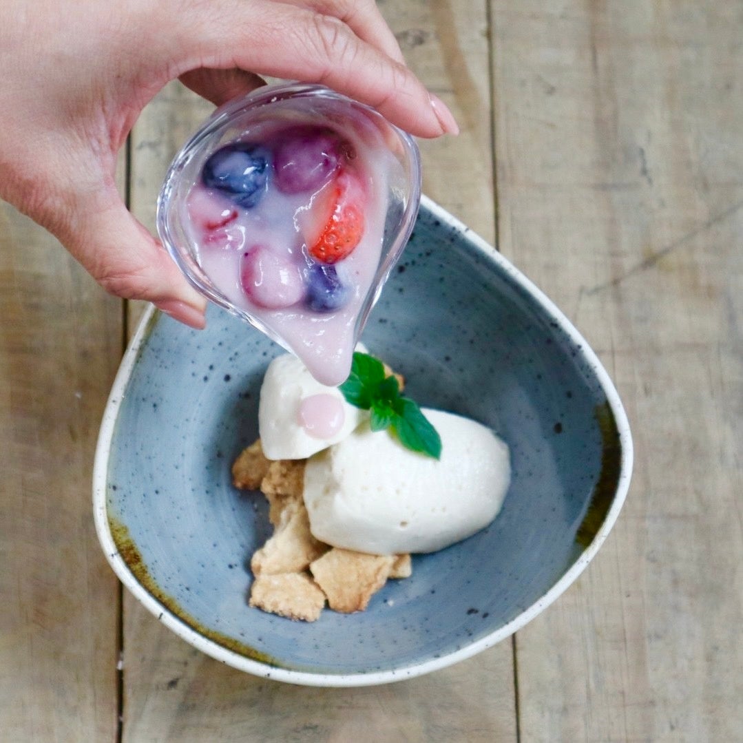 古の時代から日本の食を支えてきた発酵文化を伝えていきたい。ただ、例えば昔からの発酵食品をそのままお出しするのではなく、ちょっと知恵を絞って「え?これ味噌が入ってるの?」「こんな綺麗な色、茶色じゃないけど発酵してるの?」「こんな洋風にもなるの?」「お砂糖つかってないのになんで甘いの?」などなど、見て、聞いて、食べてワクワクする。