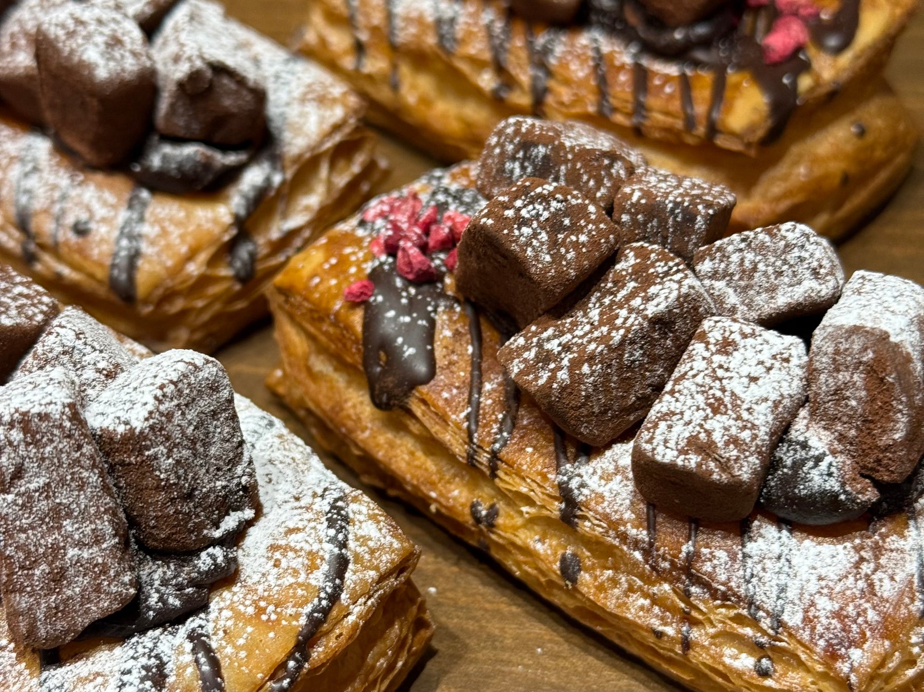 味と食感にこだわった濃厚で滑らかなくちどけの「自家製の生チョコ」がとっても美味しいと大評判の生チョコデニッシュです。
