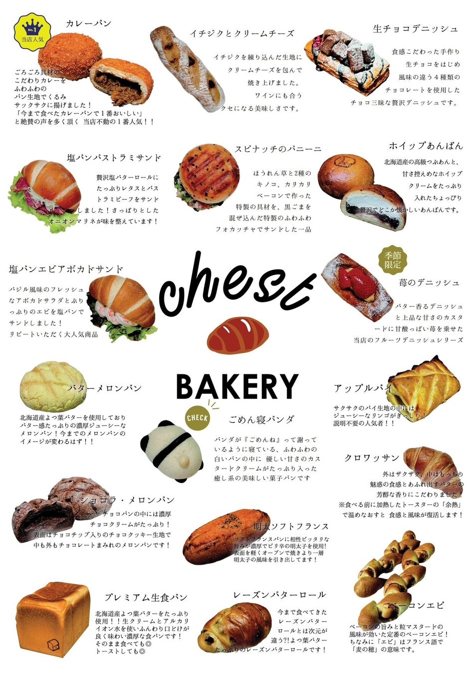 今年の3月で3周年を迎える「チェストベーカリー」(名古屋市西区)が、お客様への日頃の感謝の気持ちを込めて3月29日(土)~31日(月)の3日間、とってもお得な「春のパンまつり」を開催致します!