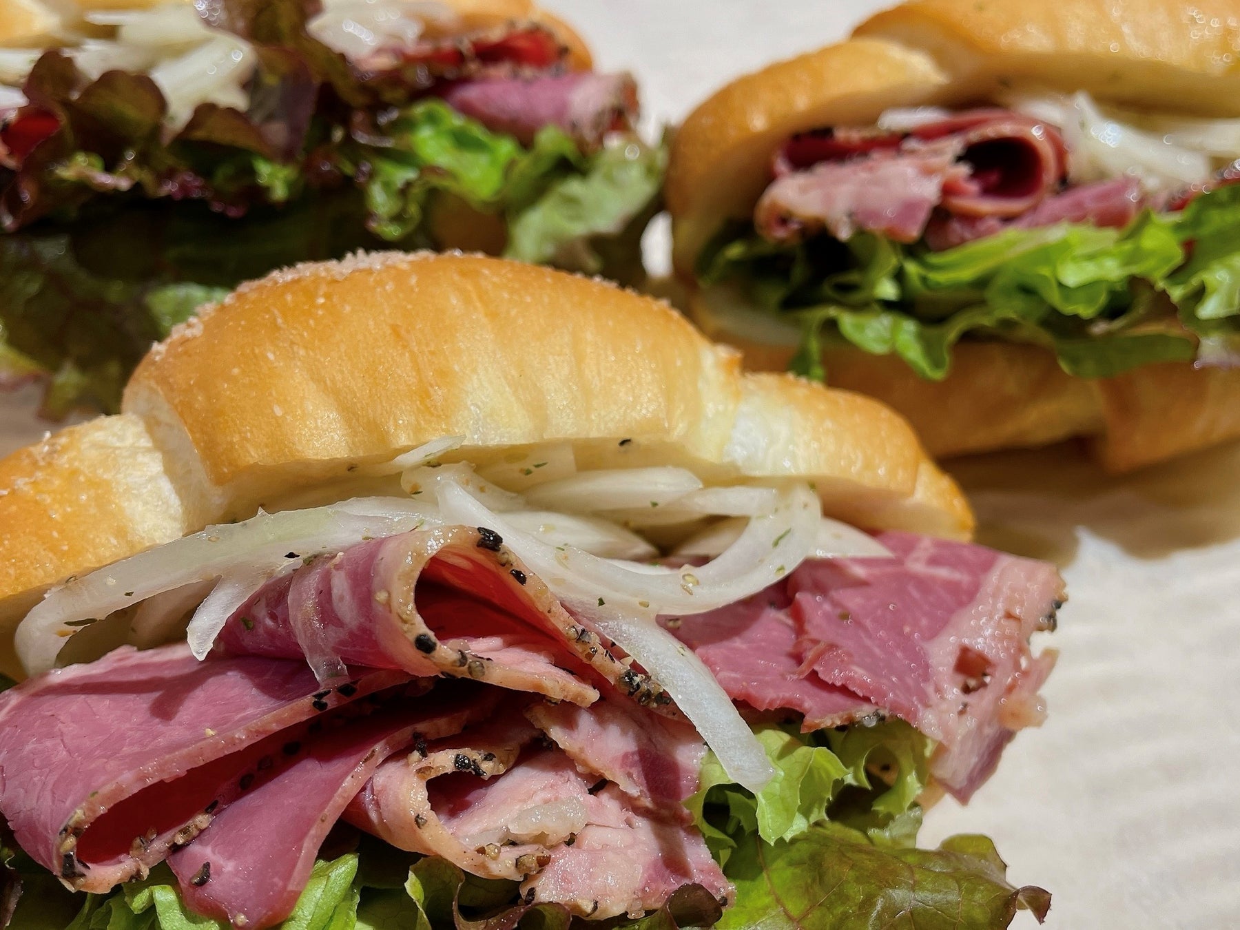 北海道産よつ葉バターとフランス産ゲランドの塩を使用した当店自慢の「贅沢塩バターロール」にさまざまな具材をサンドした「塩パンサンド シリーズ」