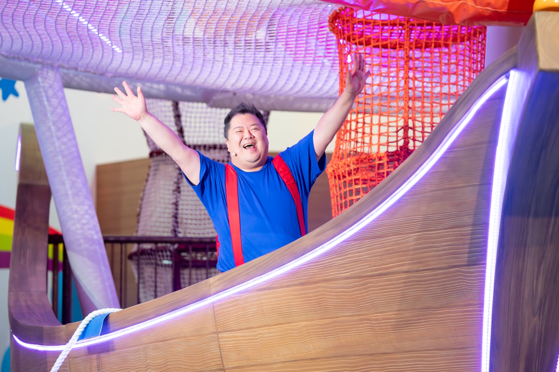 超ドデカイブタメンくんアドベンチャーは日本最大級の空間立体型遊具で、親子で体を動かしながら思いっきり楽しめる設計になっています。一度に約200名が遊べる広大な空間で、子どもたちが全身を使ってワクワクする体験ができる仕掛けが満載です。