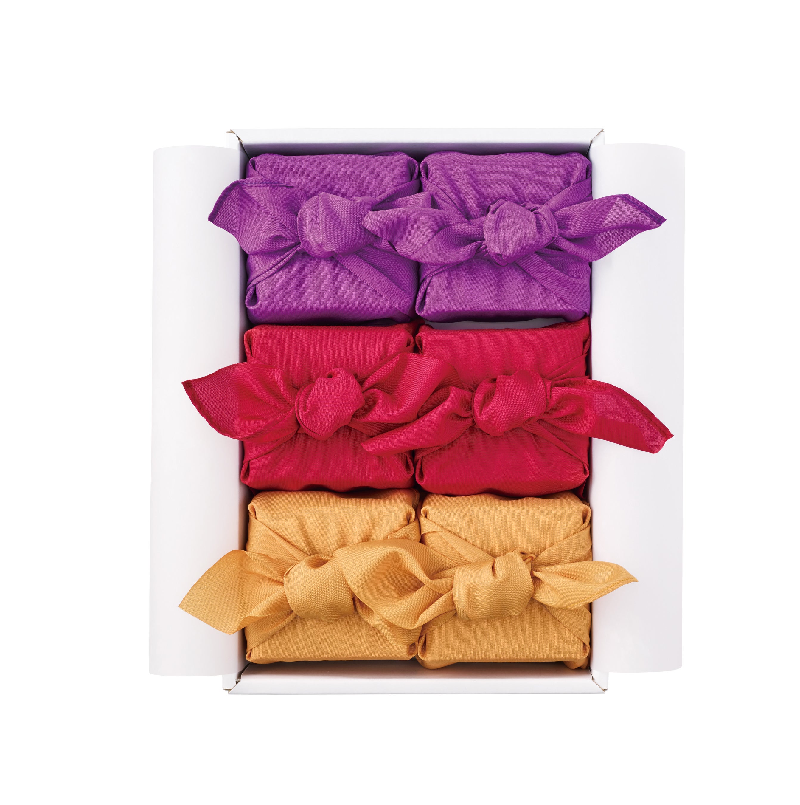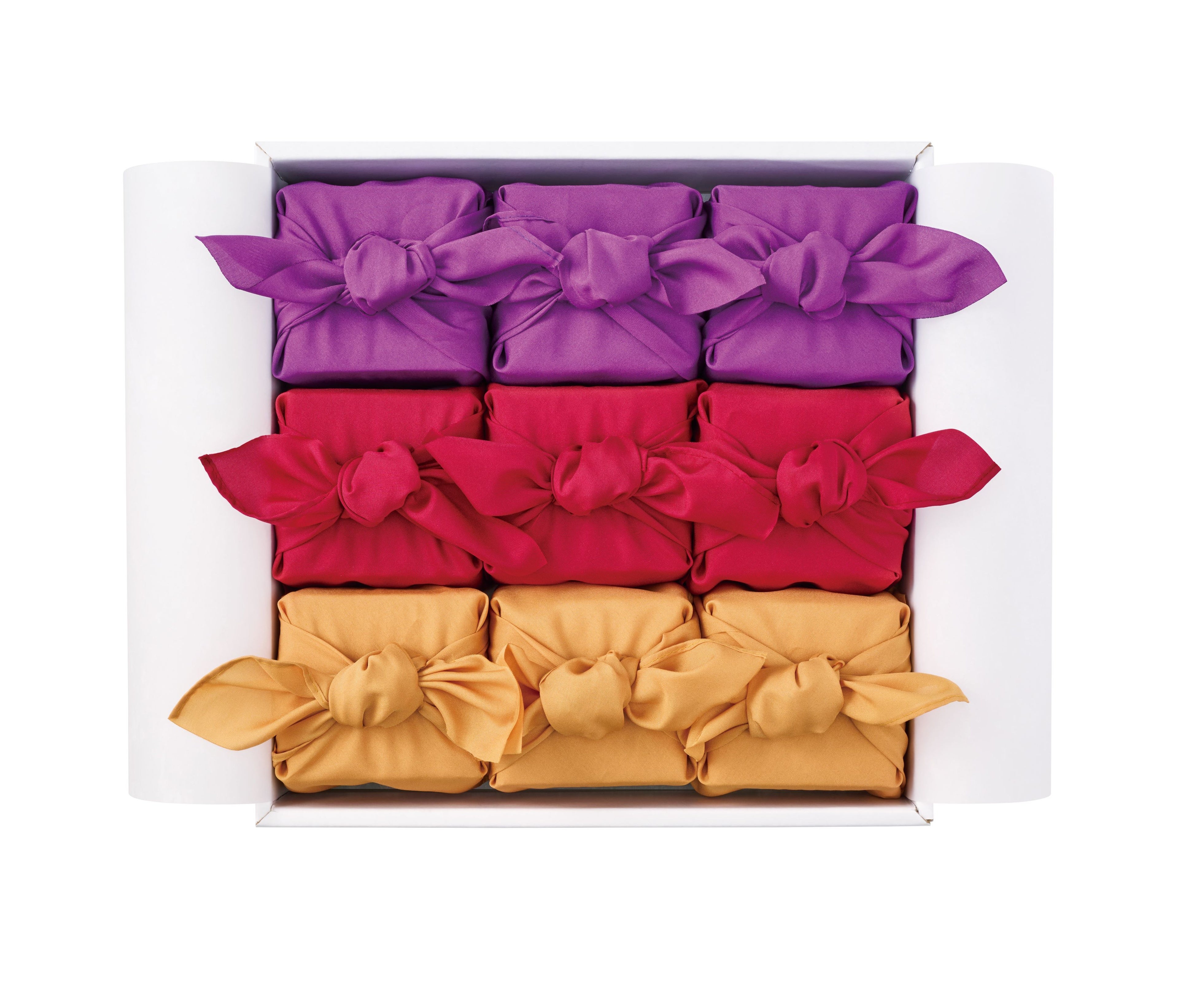 四季の重ね色目をまとった風呂敷で一つひとつ丁寧に包み、贈る方の美意識と、受ける方の心をやさしくほどく上質なギフトに仕上げています。