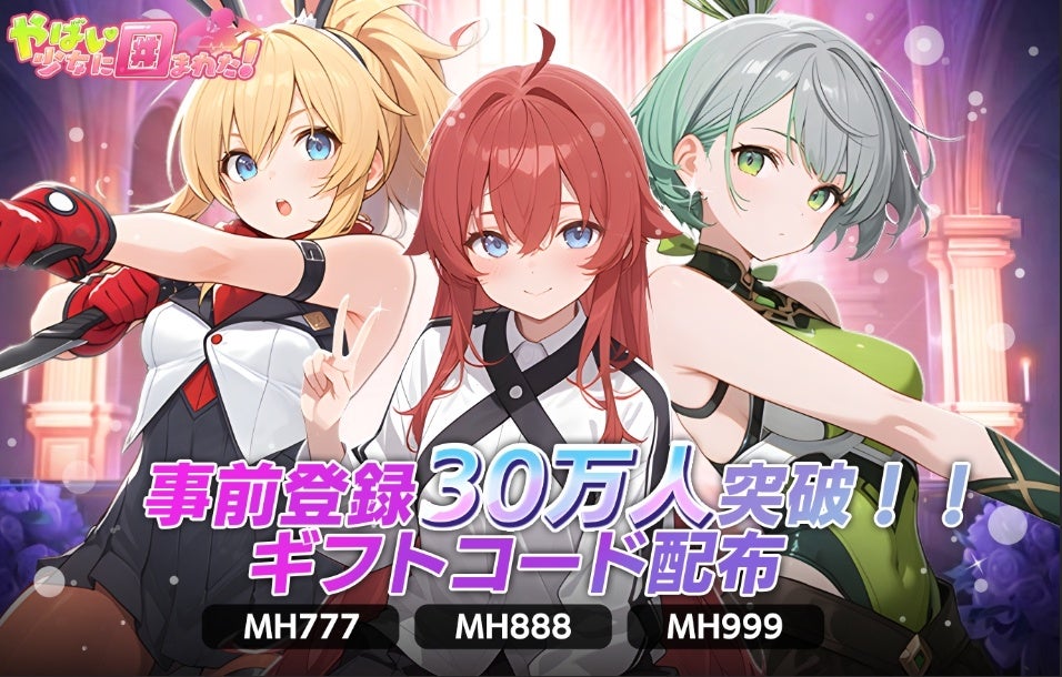 HONG KONG STAR POWER CO.,LIMITEDは、2025年3月27日現在、スマートフォン向け新作RPG『ヤバイ!少女に囲まれた!』の事前登録者数が30万人を突破したことを記念し、下記のギフトコードを全ユーザーに配布することを発表いたしました。