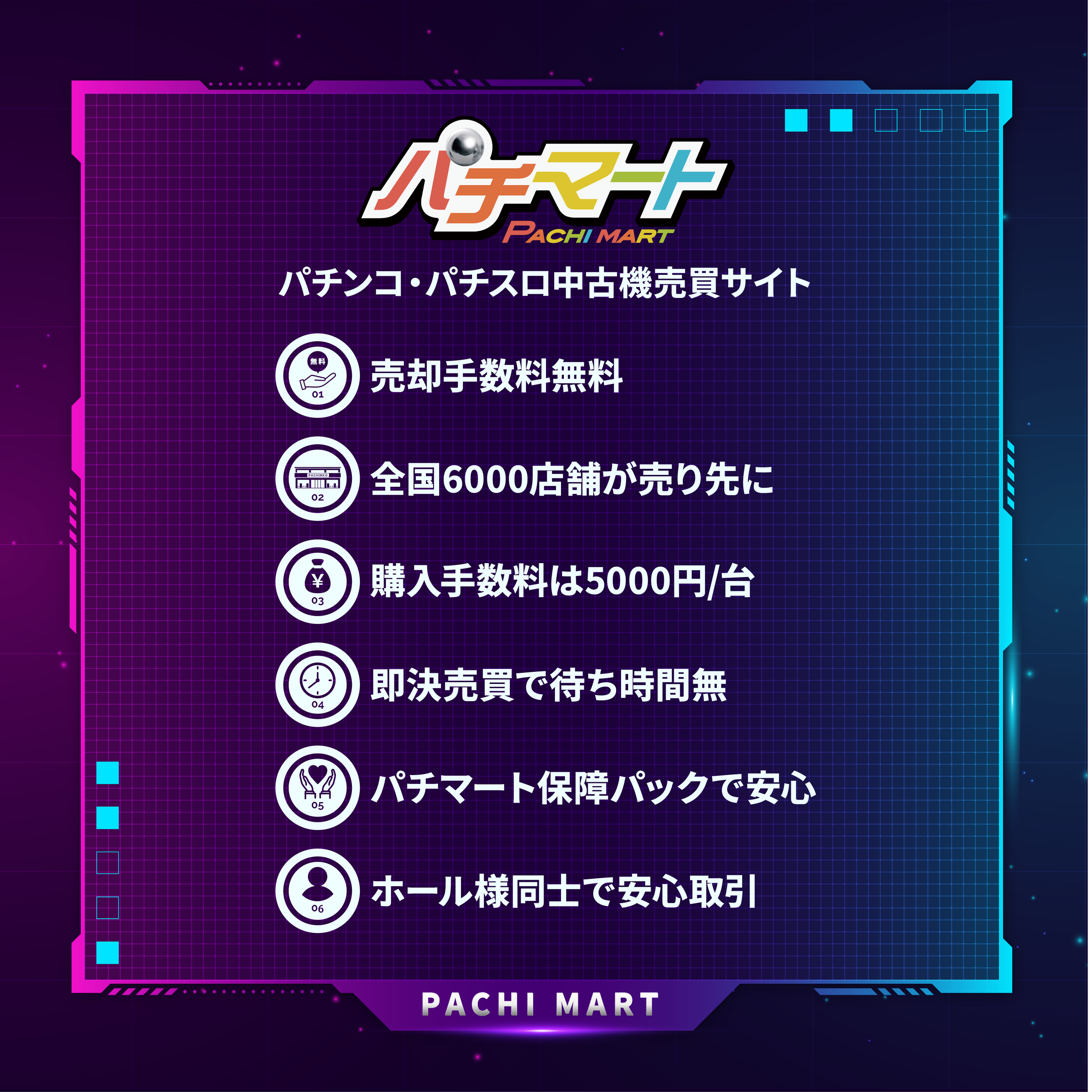 パチマートは、パチンコ・パチスロ業界の新たなスタンダードを目指し、ユーザーの皆様にとってより良い取引環境を提供してまいります。
