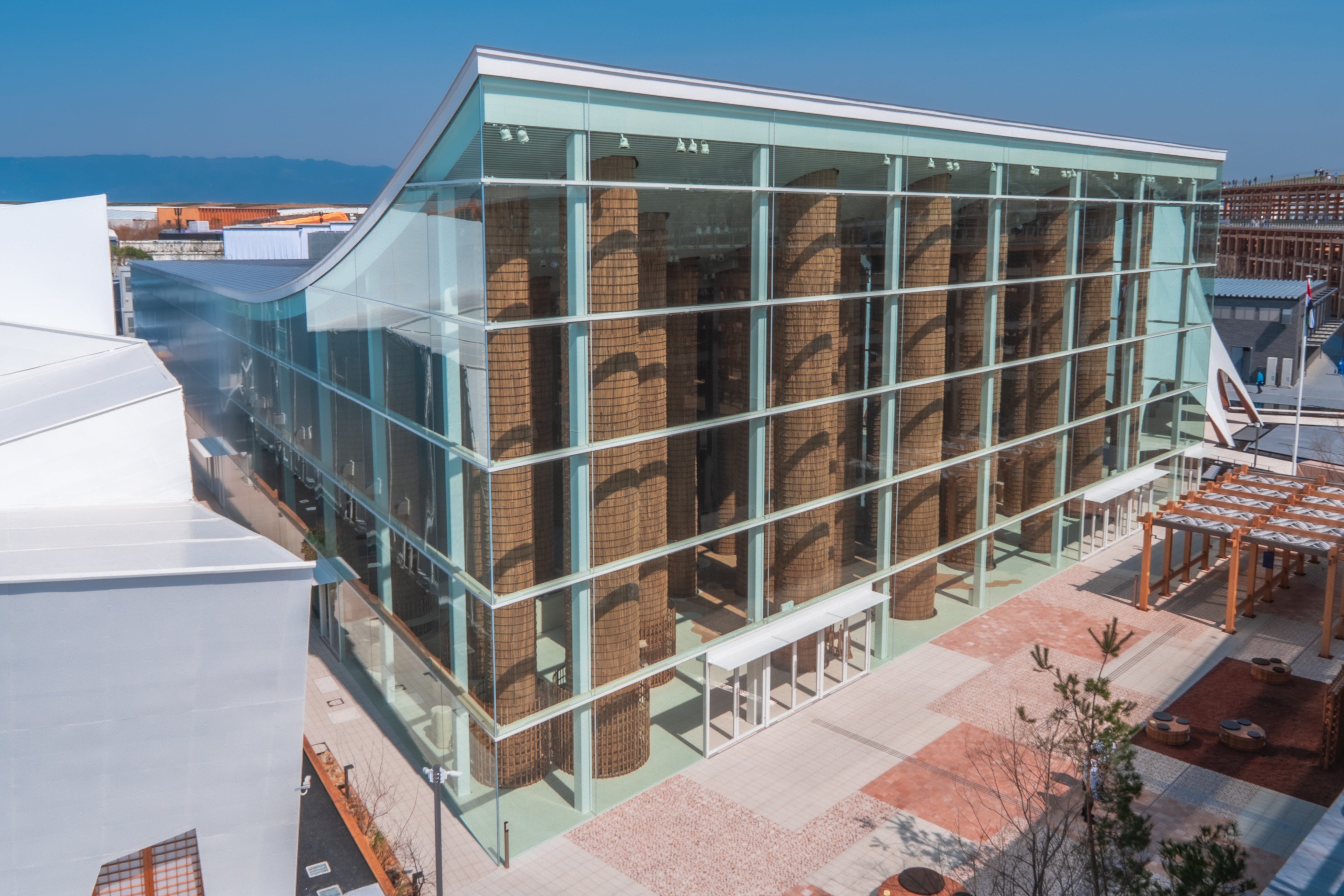 パビリオンの建築は、UAEを象徴するナツメヤシの木に着想を得て、伝統的なエミラティ建築様式「アリーシュ」を再解釈したものです。ナツメヤシの農業廃棄物と日本の匠の木工技術を融合することで、UAEと日本の文化が協働の精神のもとに結びついています。