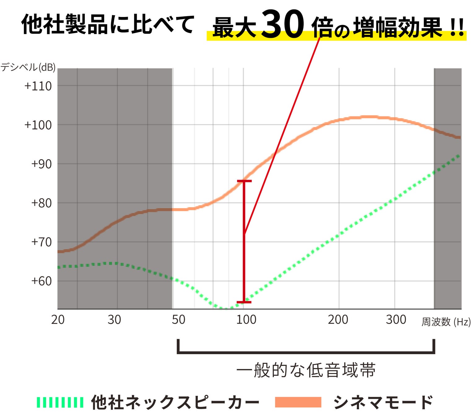 本体には左右のステレオスピーカー(径40mm)に加え、直径50mmのデュアルパッシブラジエーターを内蔵した2chサウンドシステムを採用。一般的なネックスピーカーは低音再生に弱く、音の薄さを指摘される中、本製品は低音域まで豊かで厚みのある音質を実現しました。
