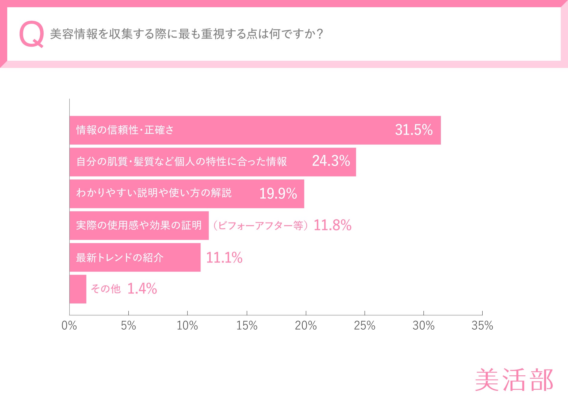 美容情報を収集する際に最も重視するのは「情報の信頼性・正確さ」(31.5%)