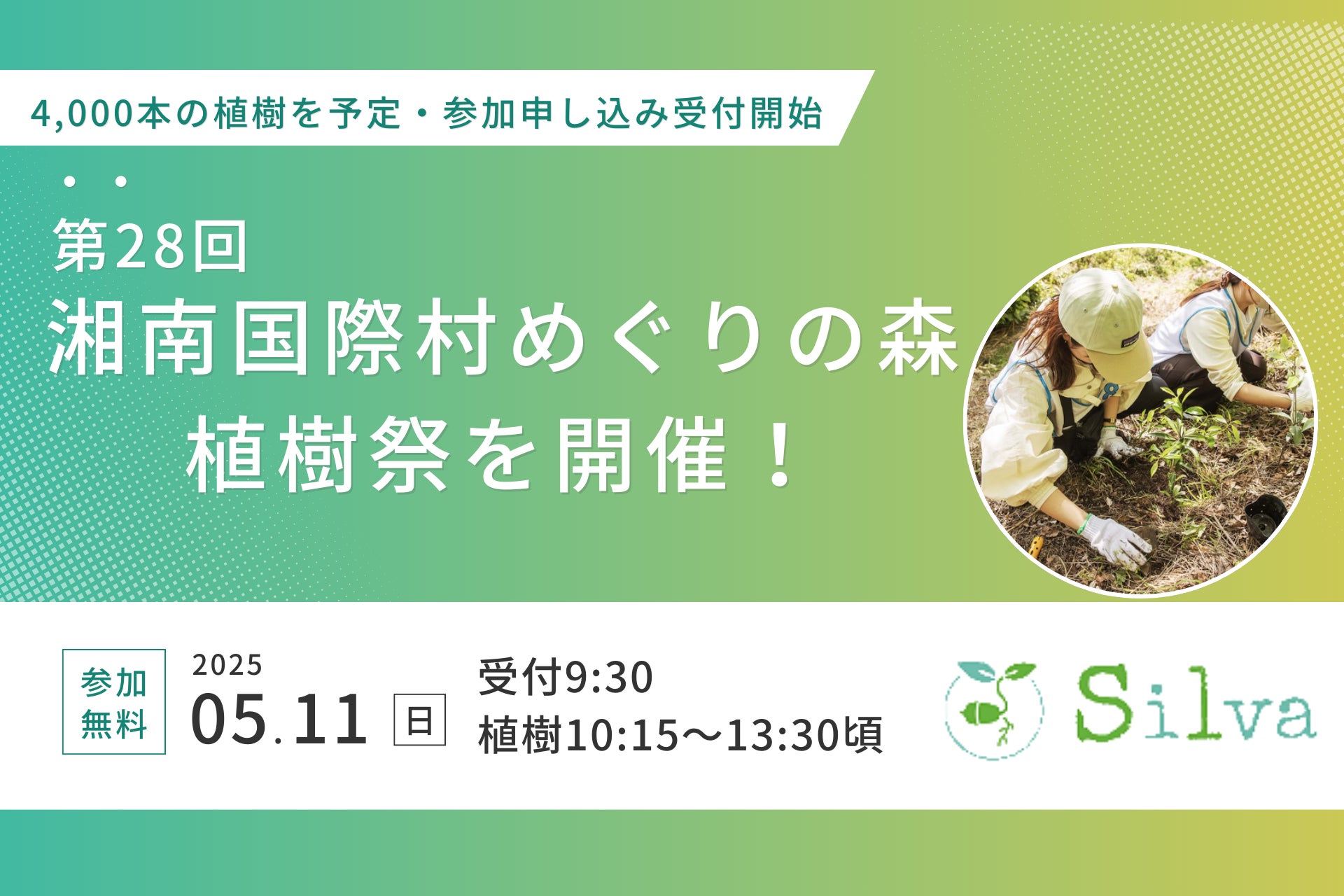 非営利型一般社団法人Silva(以下「シルワ」)は、第28回「湘南国際村めぐりの森植樹祭」を2025年5月11日(日)に開催します。本イベントは、持続可能な森林再生を目指し、都市近郊に豊かな森を育む取り組みとして、2009年から継続している植樹活動の一環です。
