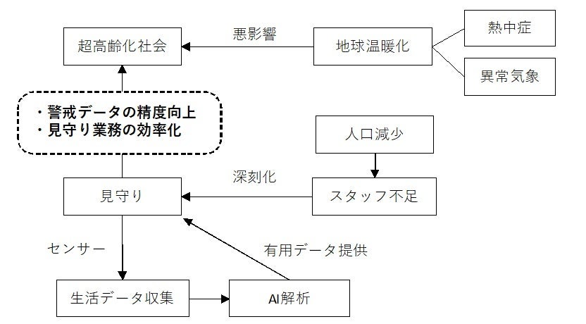 さらに地球温暖化の進行によって、平均気温の上昇、氷河や氷床の融解による未知なるウィルスの蔓延などの危険要因は深刻化し、高齢者のみならず、全国民の安心・安全な生活環境のモニタリングは、今後の日本社会に求められています。