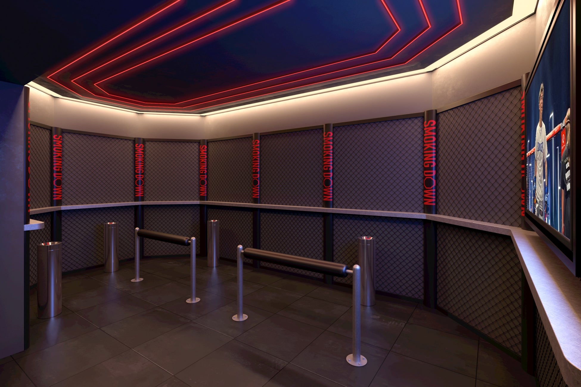 ⚫ コンセプト : 格闘家朝倉未来が携わる喫煙所として、 リングを想起するデザインとし、