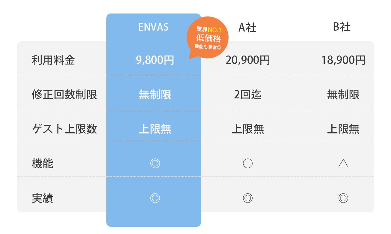 「envas」は、業界最安値クラスの9,800円(税込)で席次表をWEBで作成できるサービスです。