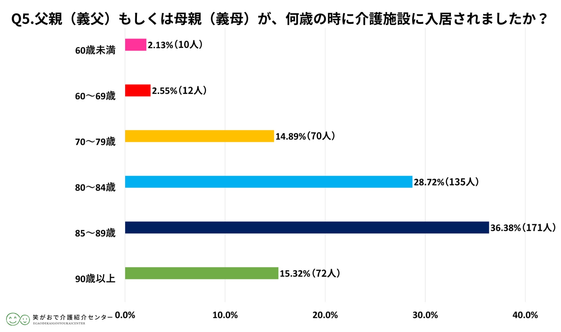 調査結果⑤|父親(義父)もしくは母親(義母)が、何歳の時に介護施設に入居されましたか?