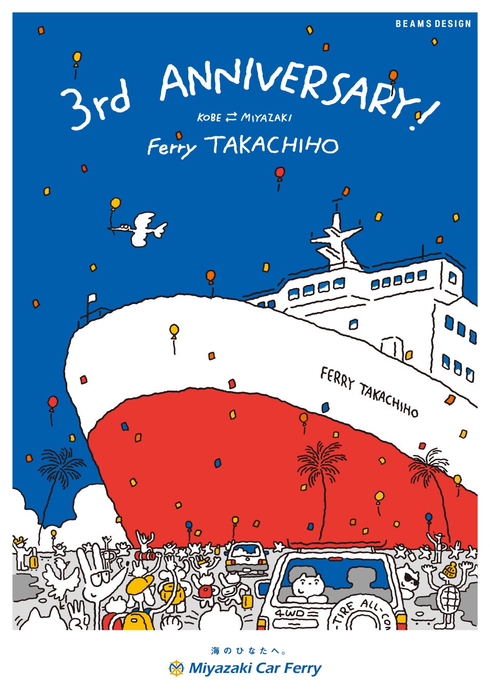 宮崎カーフェリー株式会社(本社:宮崎県宮崎市、代表取締役社長:郡司行敏)は、株式会社ビームス(本社:東京都渋谷区、代表取締役社長:設楽洋)のライセンスブランド〈BEAMS DESIGN〉による「フェリーたかちほ」、「フェリーろっこう」就航3周年キャンペーンを展開します。