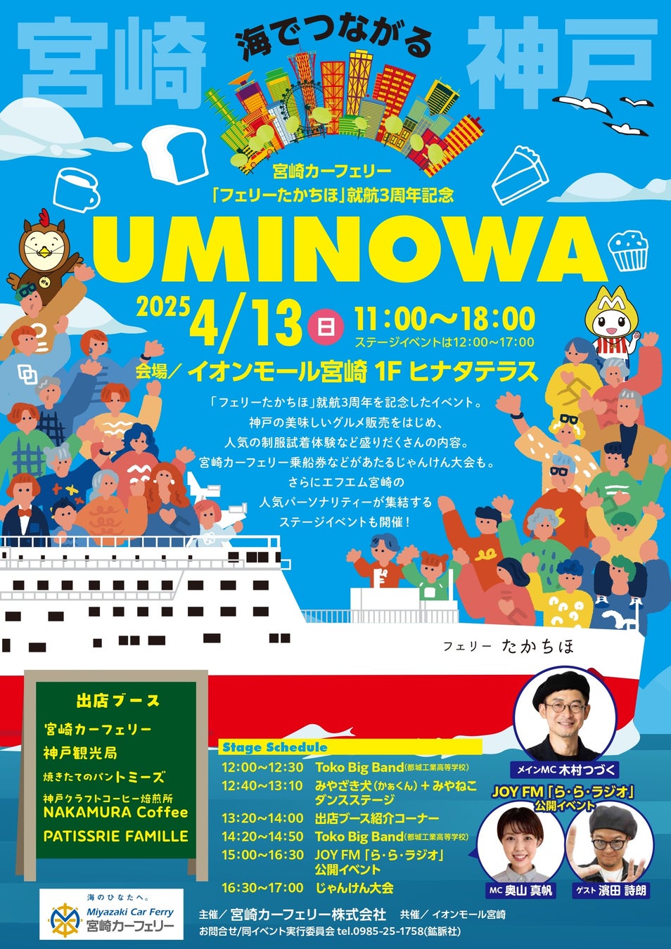 ■4月13日「フェリーたかちほ」就航3周年記念イベント「UMINOWA」、4月15日「フェリーたかちほ」就航日にステッカーを配布!